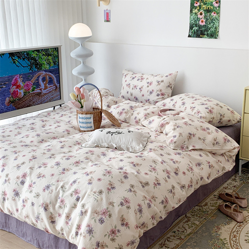 昔可家纺 2023新款普通款全棉有氧双层纱四件套 烟紫罗蔓
