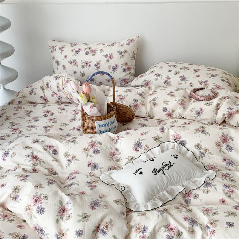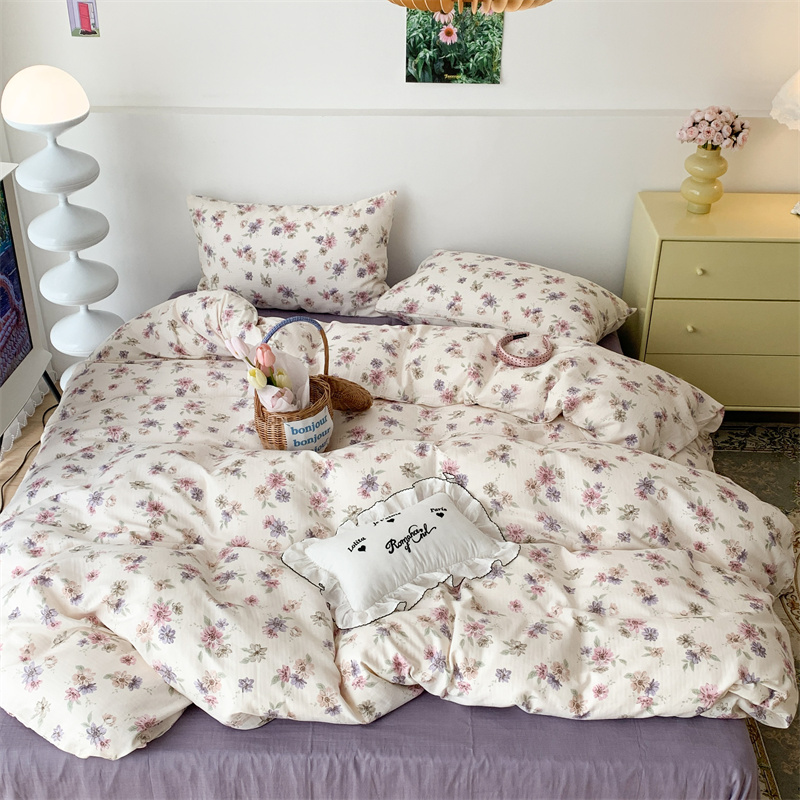 (总)昔可家纺 2023新款全棉小花系列四件套,柏林少女,小小的樱桃,紫色葡萄