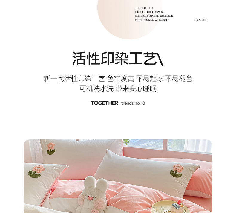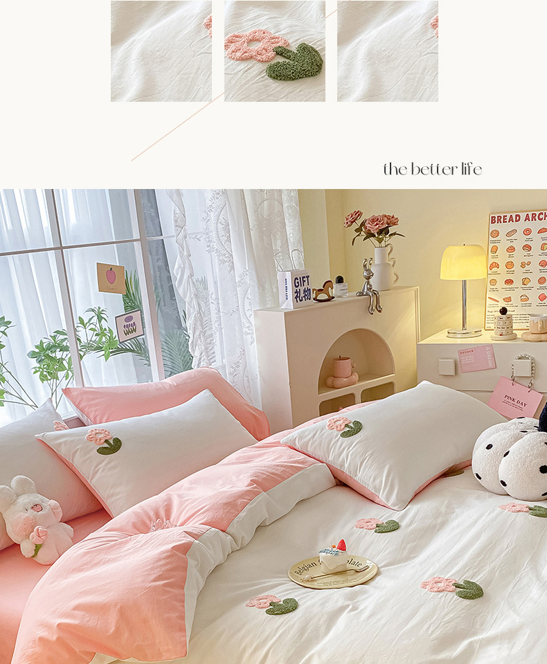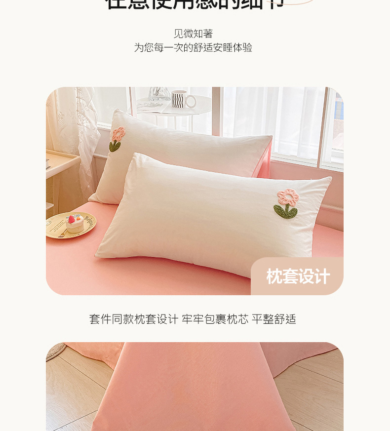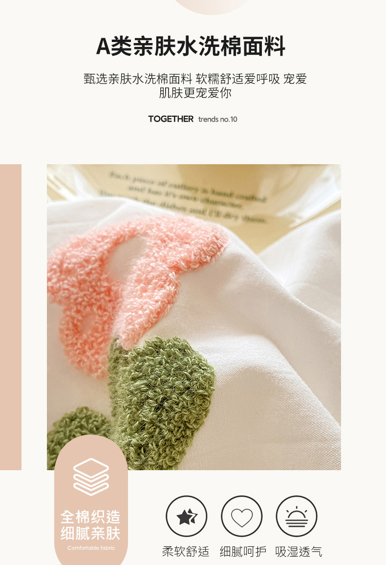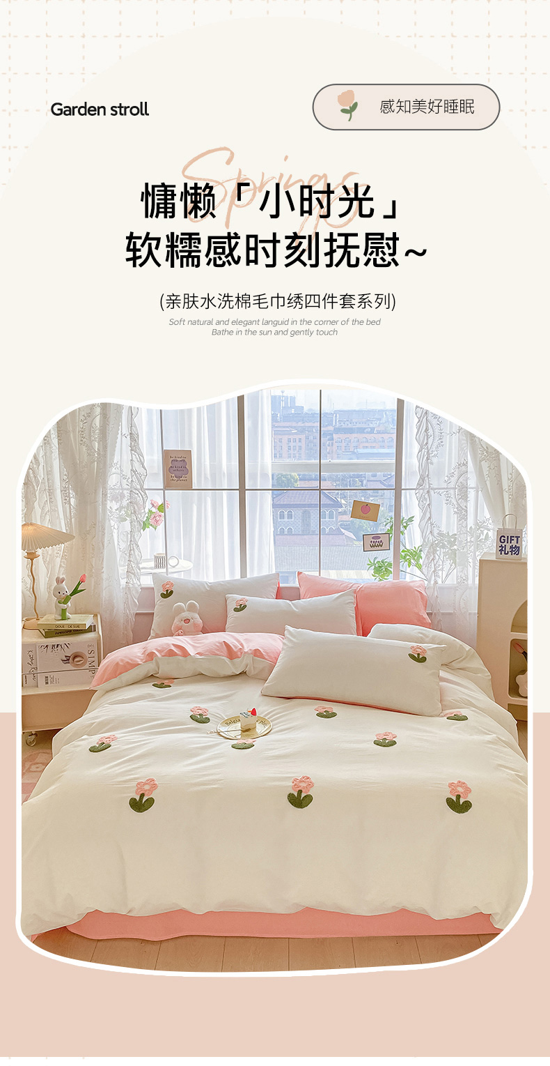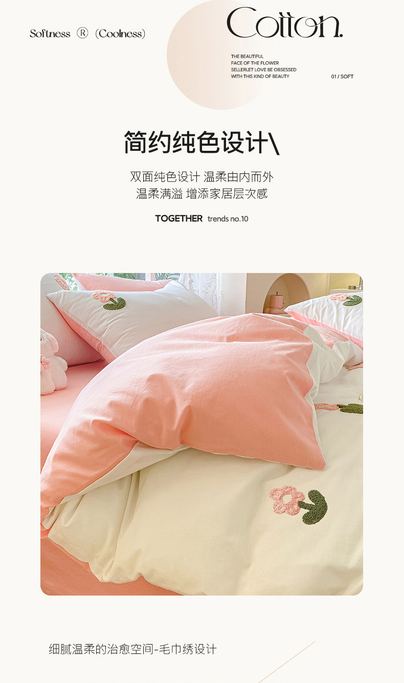当前位置: 91家纺网 > 商品网购 > 床品套件 > 四件套 > 水洗棉四件套 > 眠帛 2023新款A类水洗棉小清新毛巾绣四件套 朵朵奶油粉