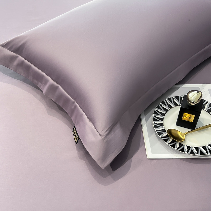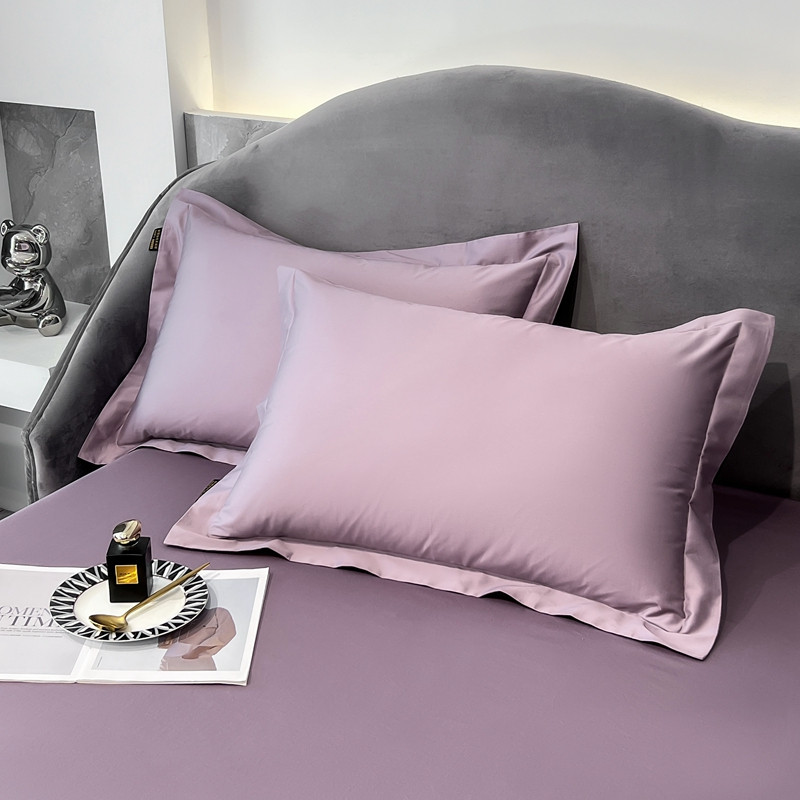莱阁亿 2023新款高支高密纯色新疆长绒棉四件套单品枕套 加仑紫