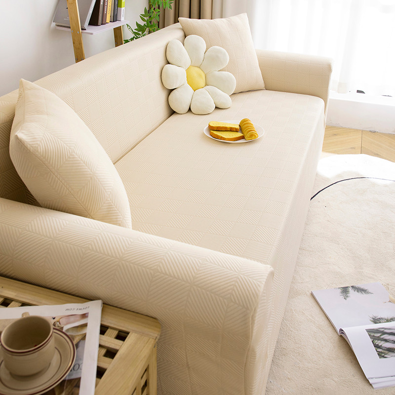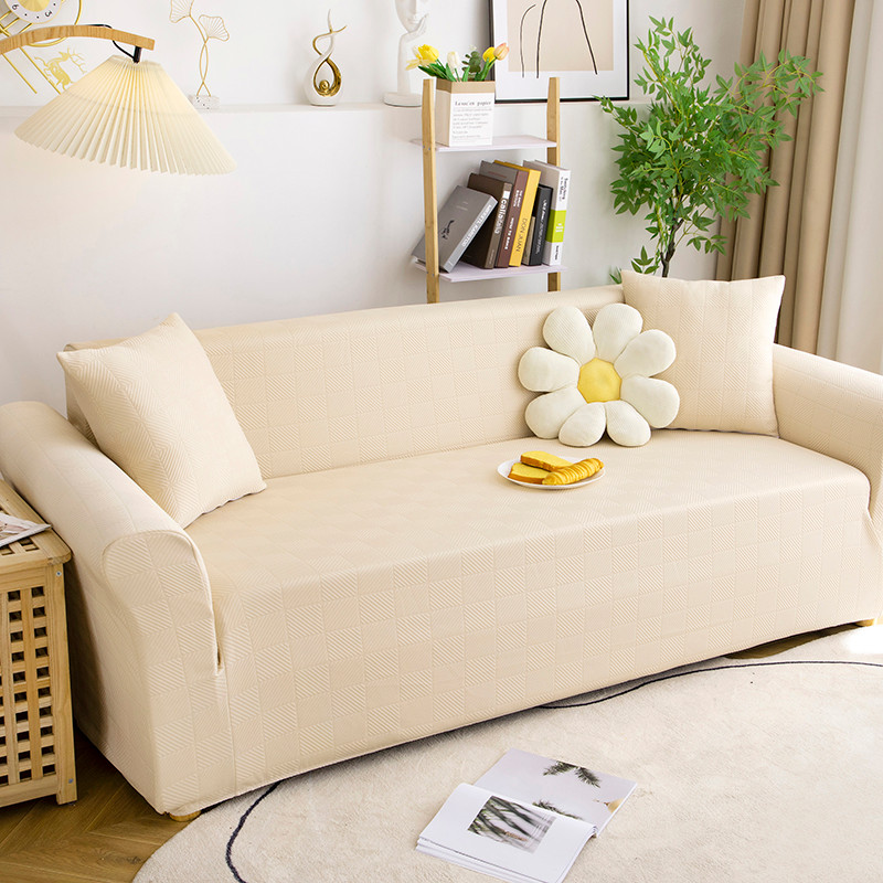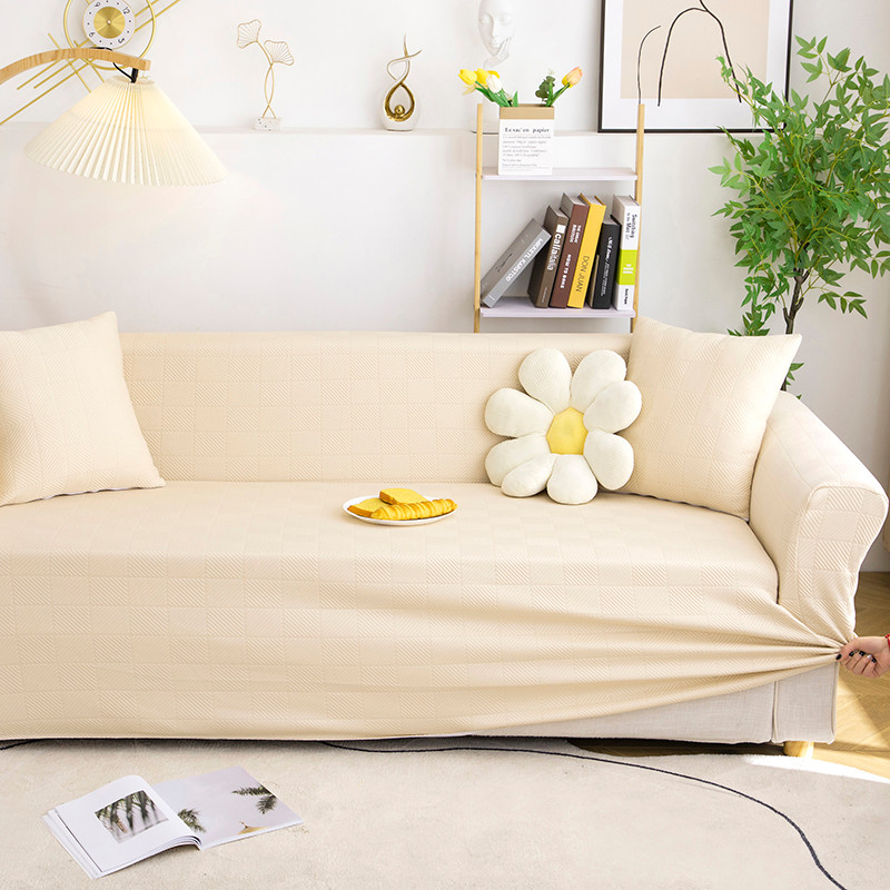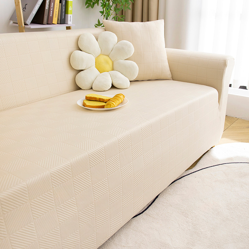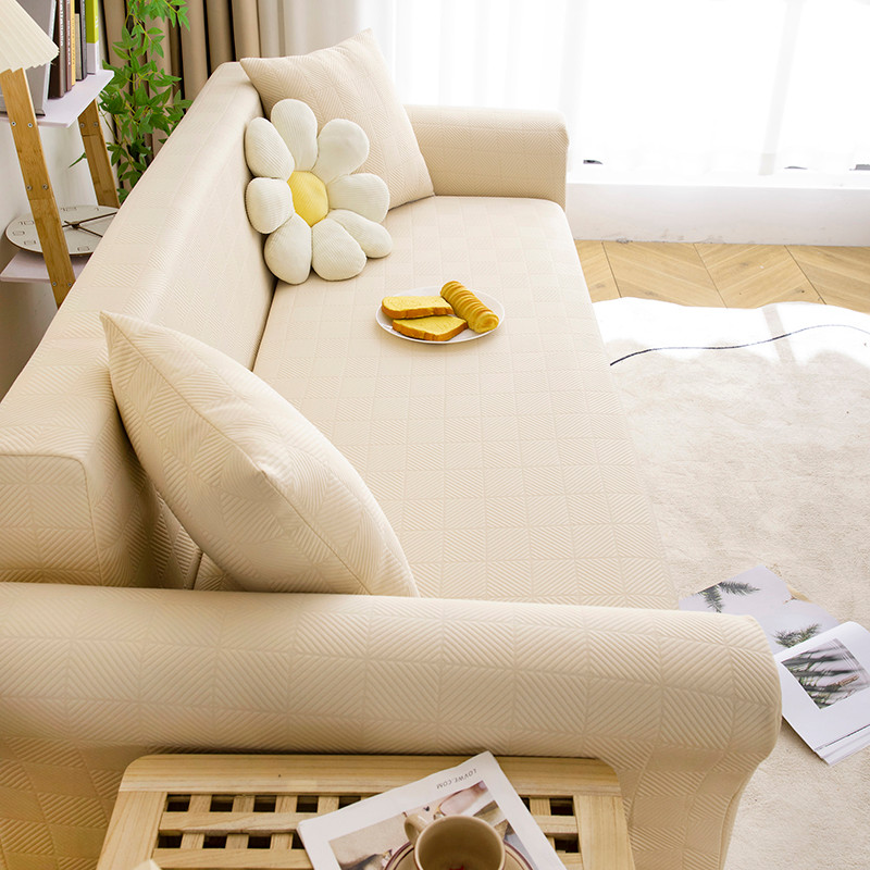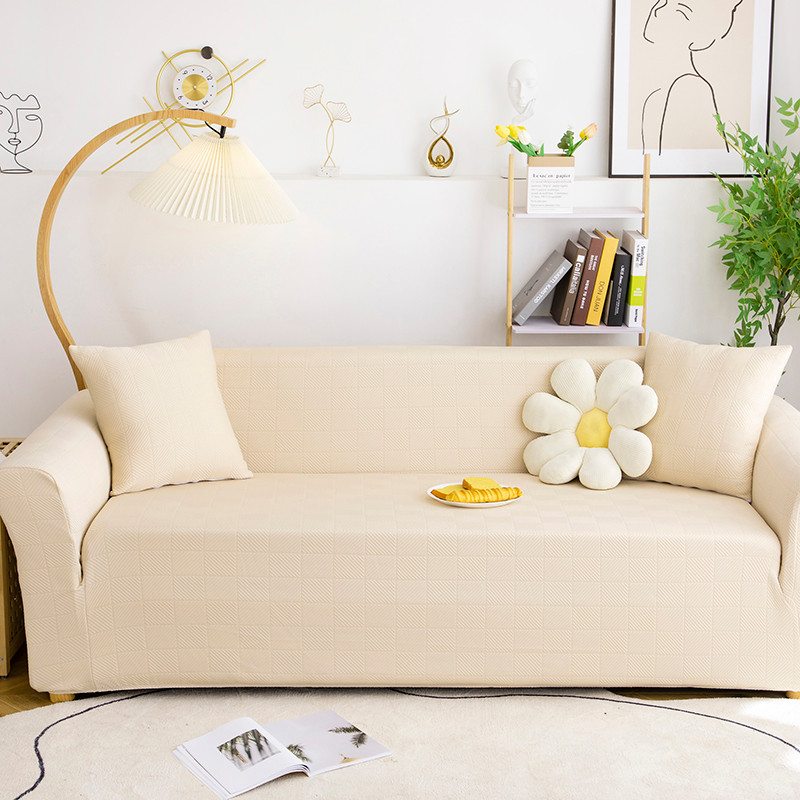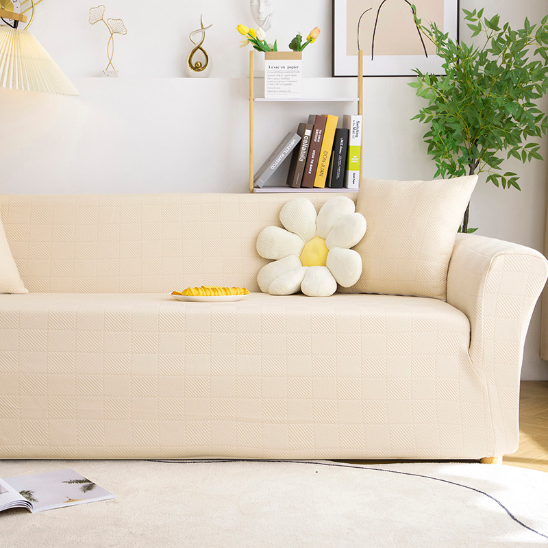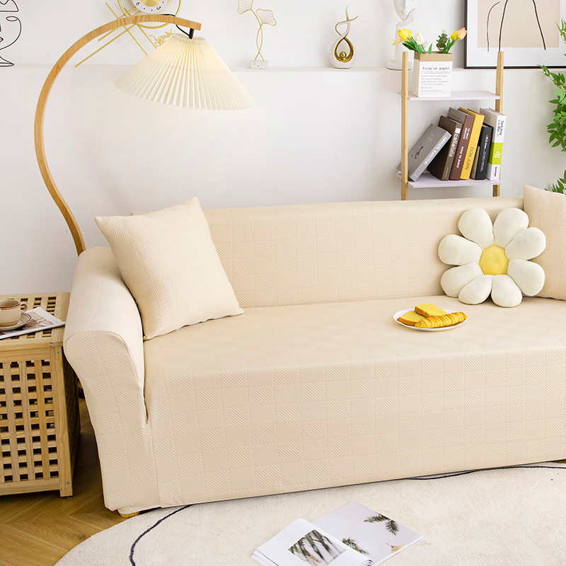 商品名称:沐沐 2026新款 芙蓉格沙发套 芙蓉格-米白