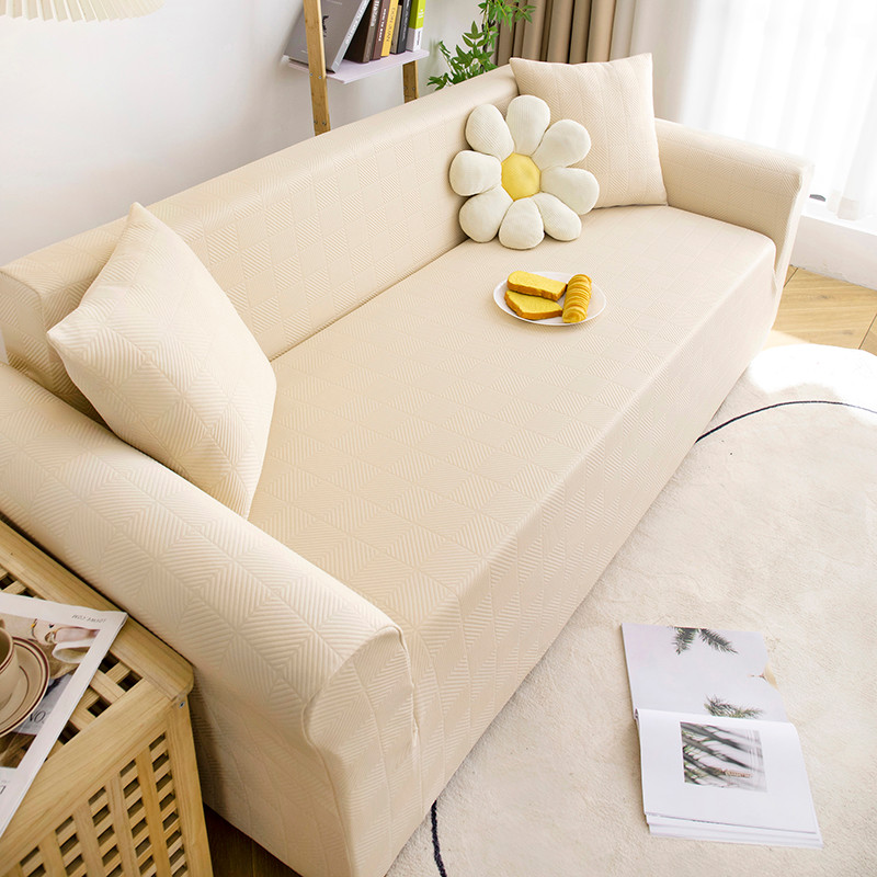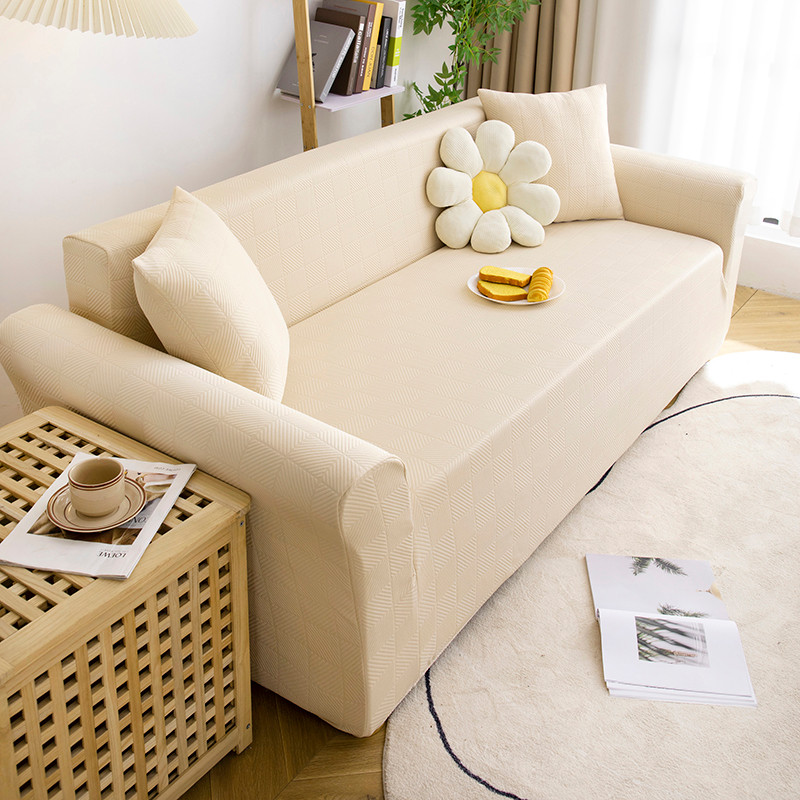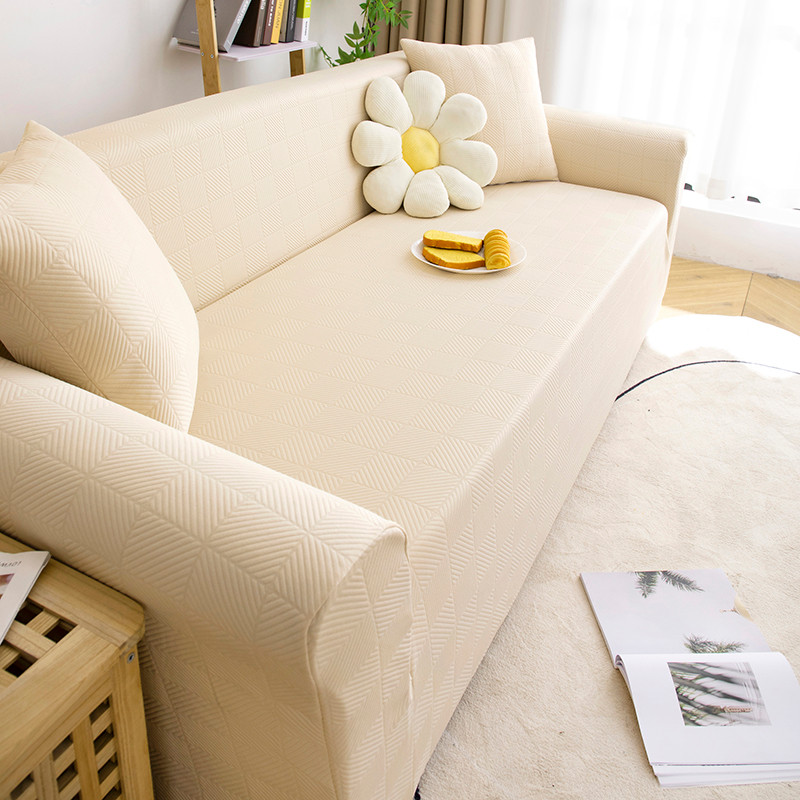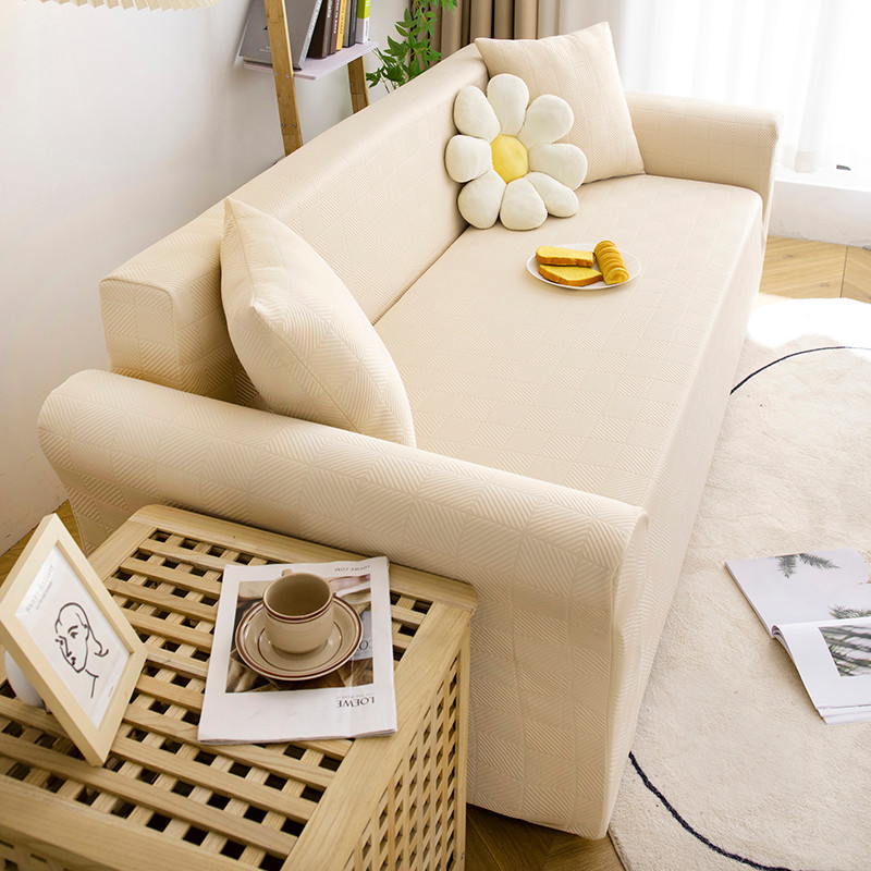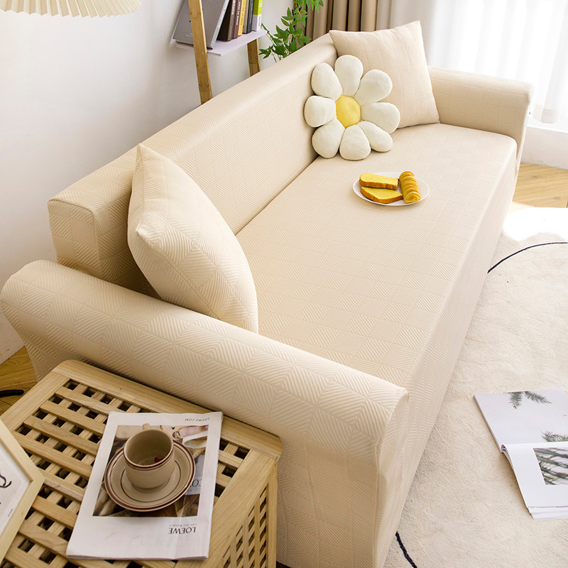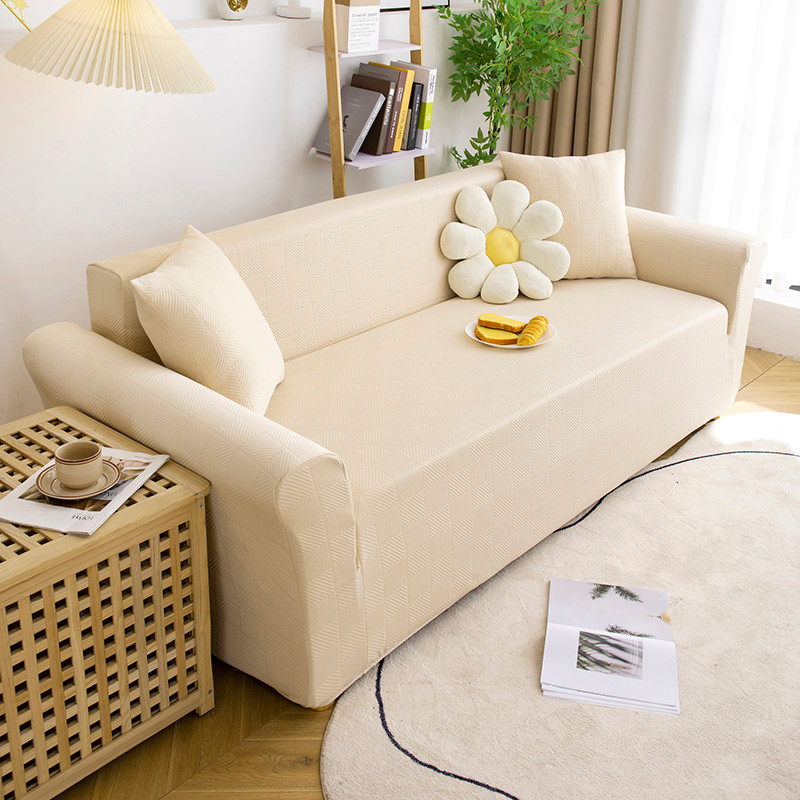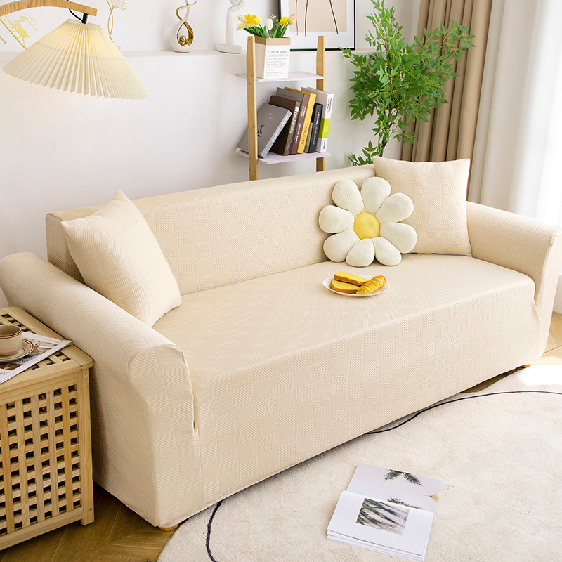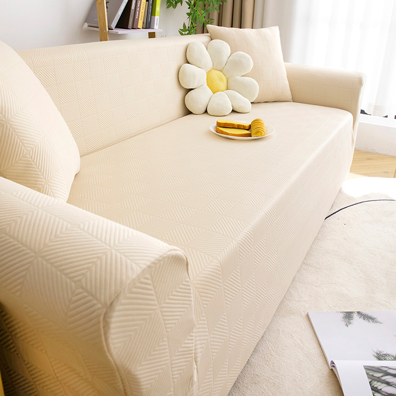 商品名称:沐沐 2026新款 芙蓉格沙发套 芙蓉格-米白