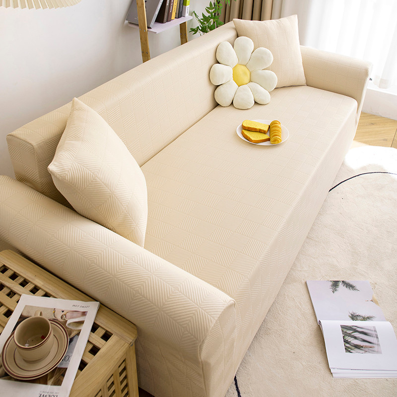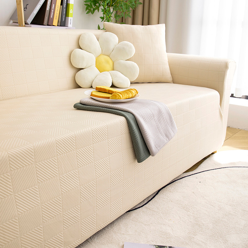 沐沐 2026新款 芙蓉格沙发套 芙蓉格-米白