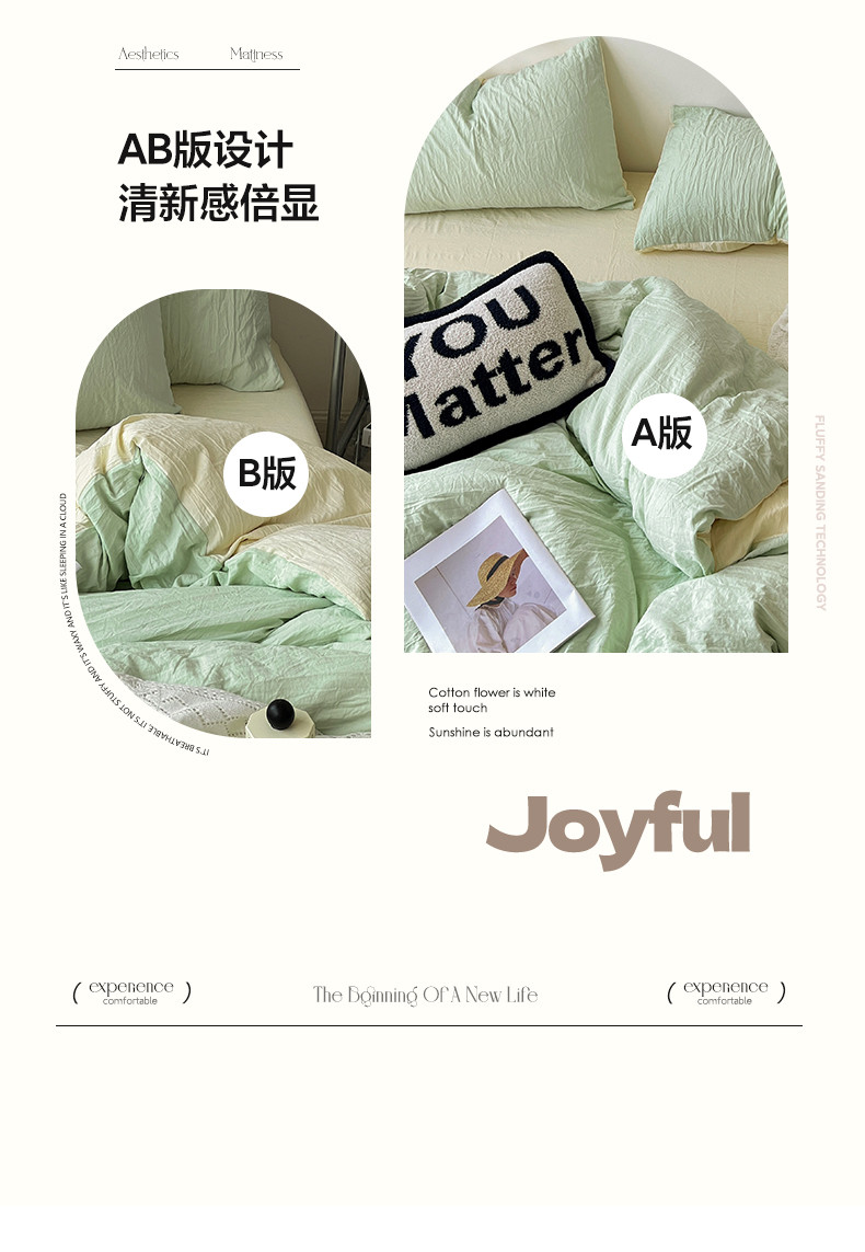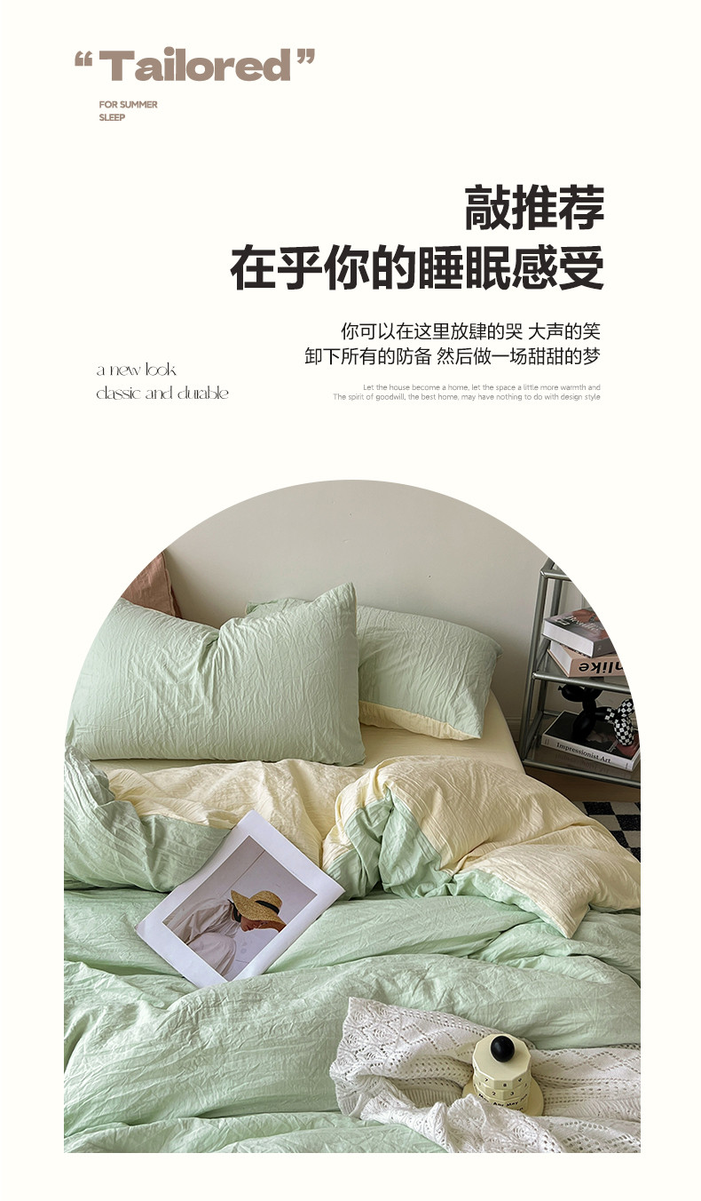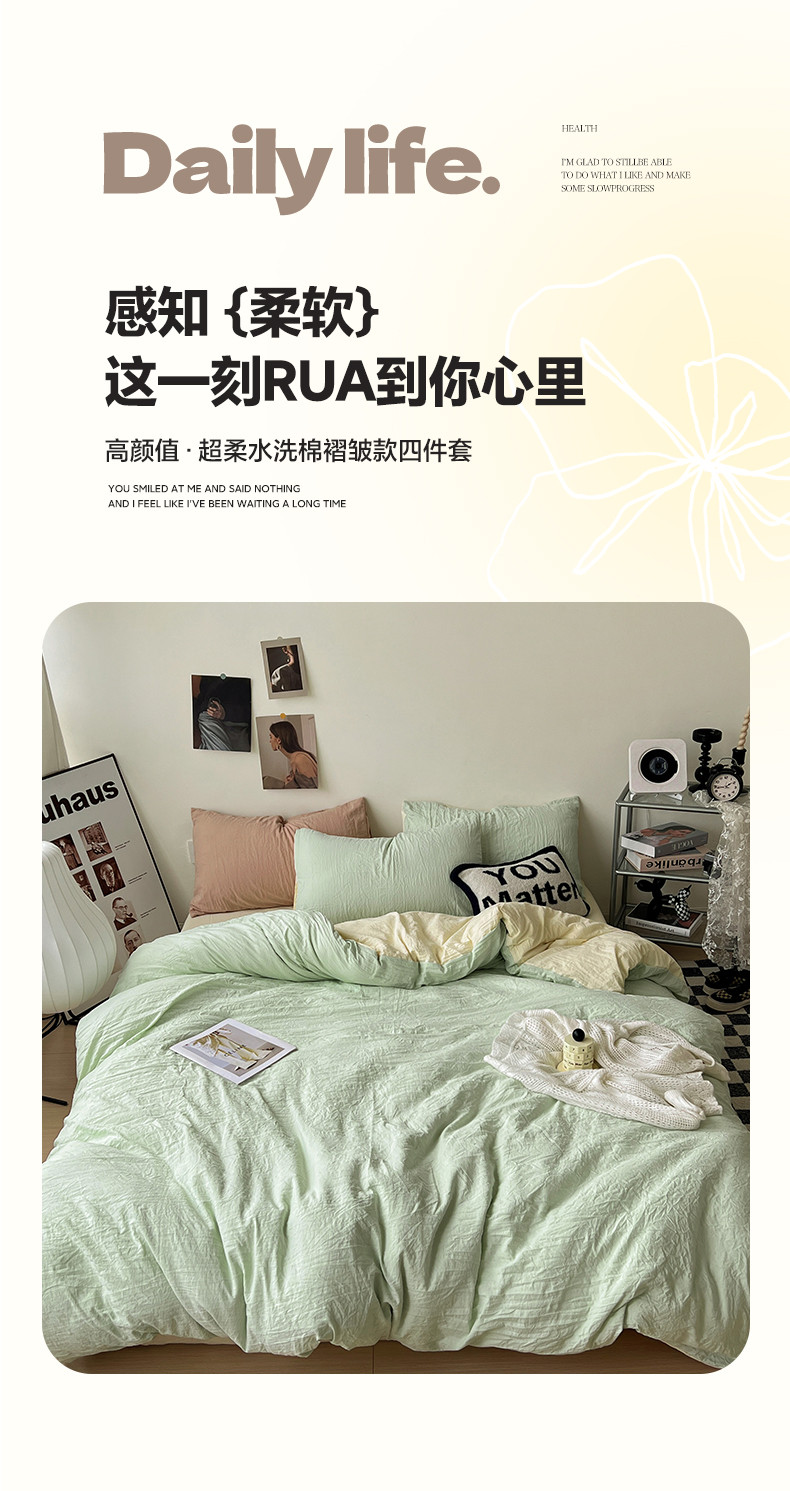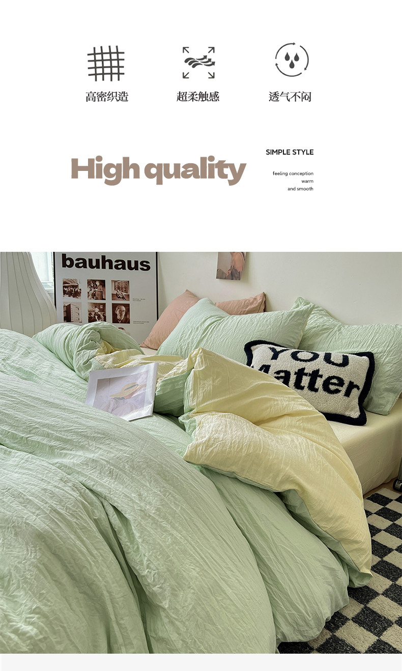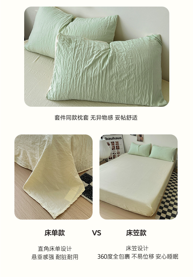 商品名称:水墨江南 2023新款超柔水洗棉简约纯色四件套 藻绿米黄