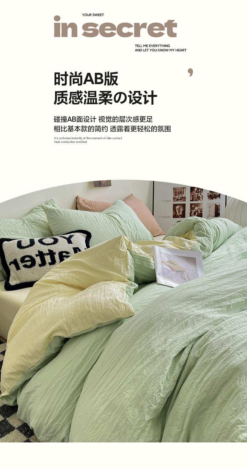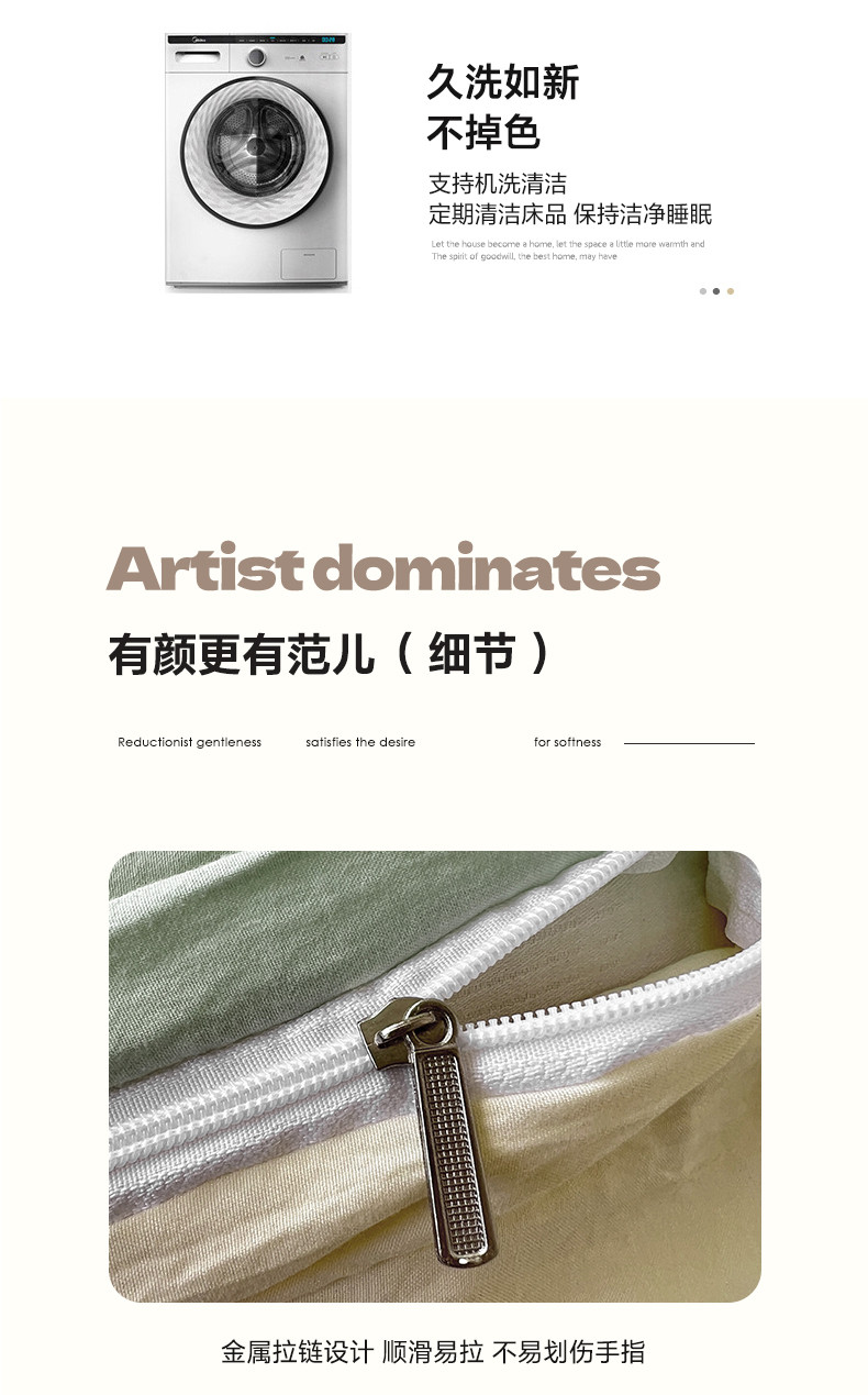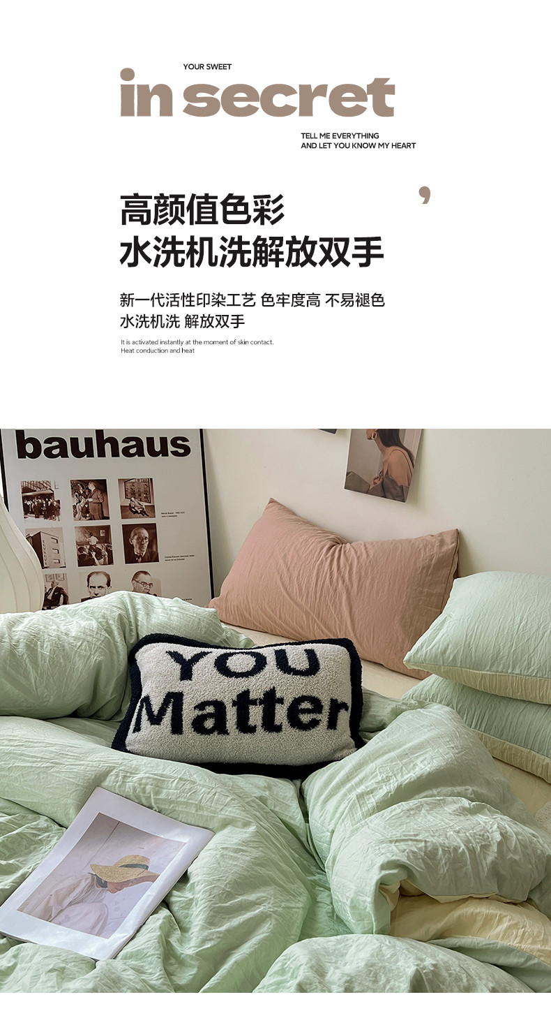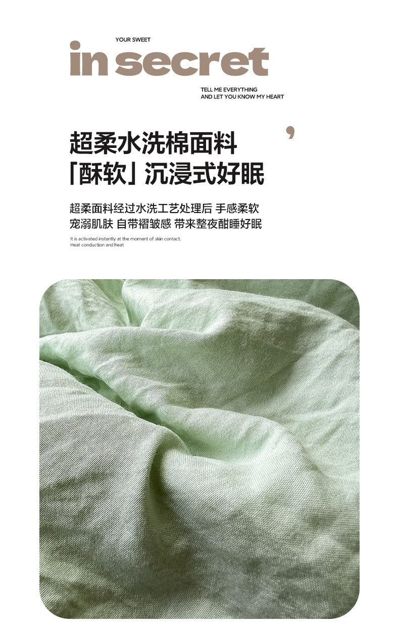 (总)水墨江南 2025新款亲肤磨毛水洗棉纯色四件套,翡绿,暗夜绿,碧蓝,橄榄绿,墨灰,浅灰深灰,雅白,藻绿米黄,中驼