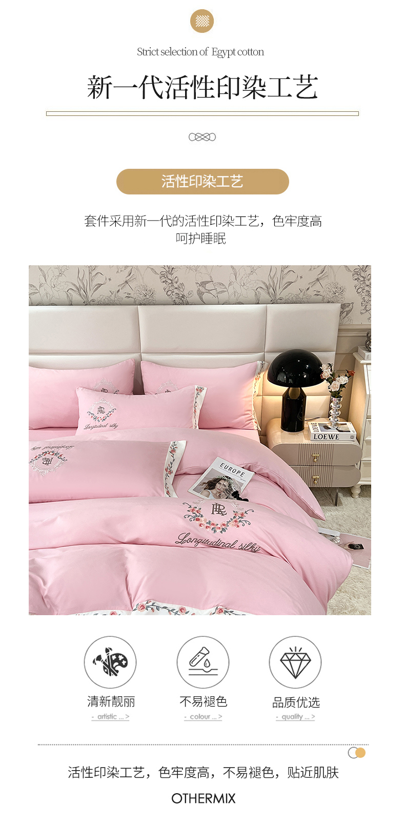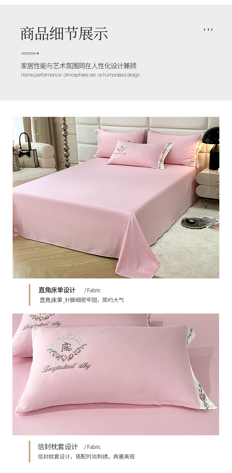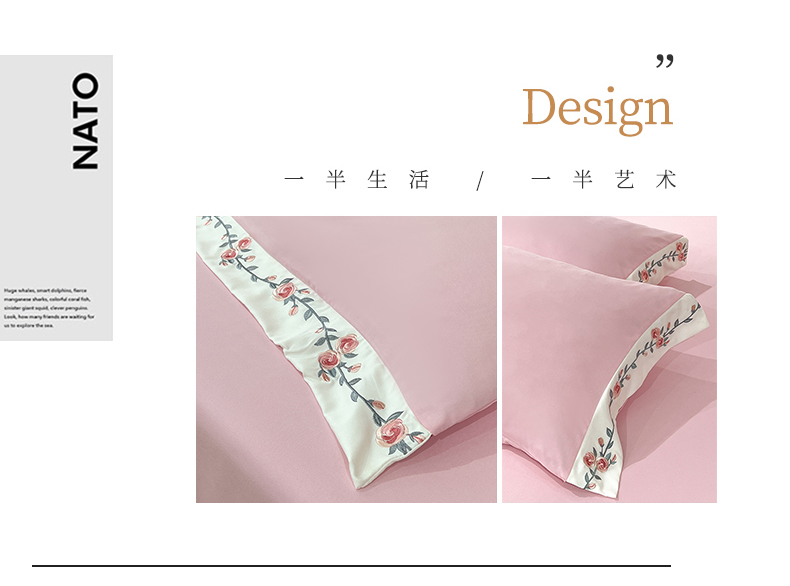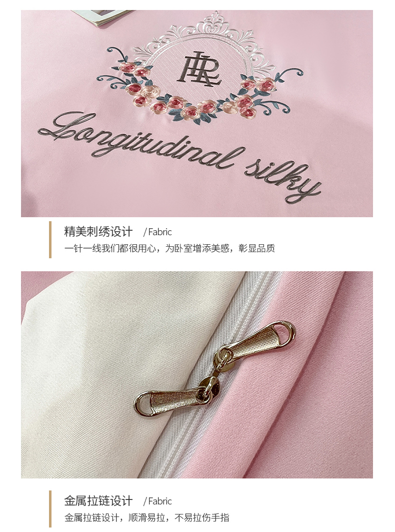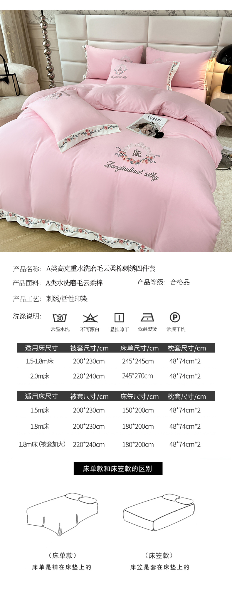 商品名称:易辰美 2024新款A类高克重水洗磨毛云柔棉刺绣四件套 樱花粉