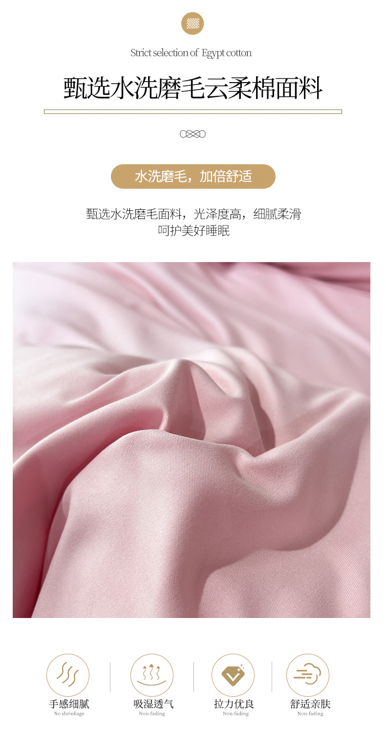 (总)易辰美 2024新款亲肤水洗棉四件套,橙色,粉色,粉玉色,酱紫色,酷黑色,奶白色,奶杏色,浅灰色,浅蓝色,浅绿色,深灰色,西瓜红,香芋紫
