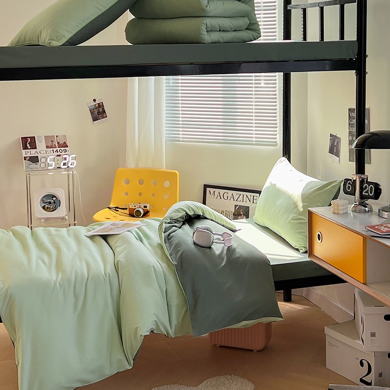 当前位置: 91家纺网 > 商品网购 > 床品套件 > 四件套 > 化纤普通四件套 > 蓝淋家纺 2023新款水洗棉学生宿舍亲肤三件套四件套 奶绿深绿