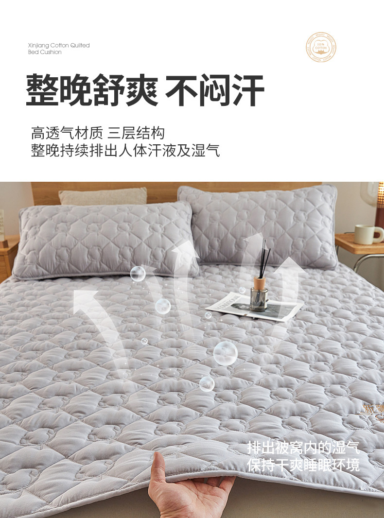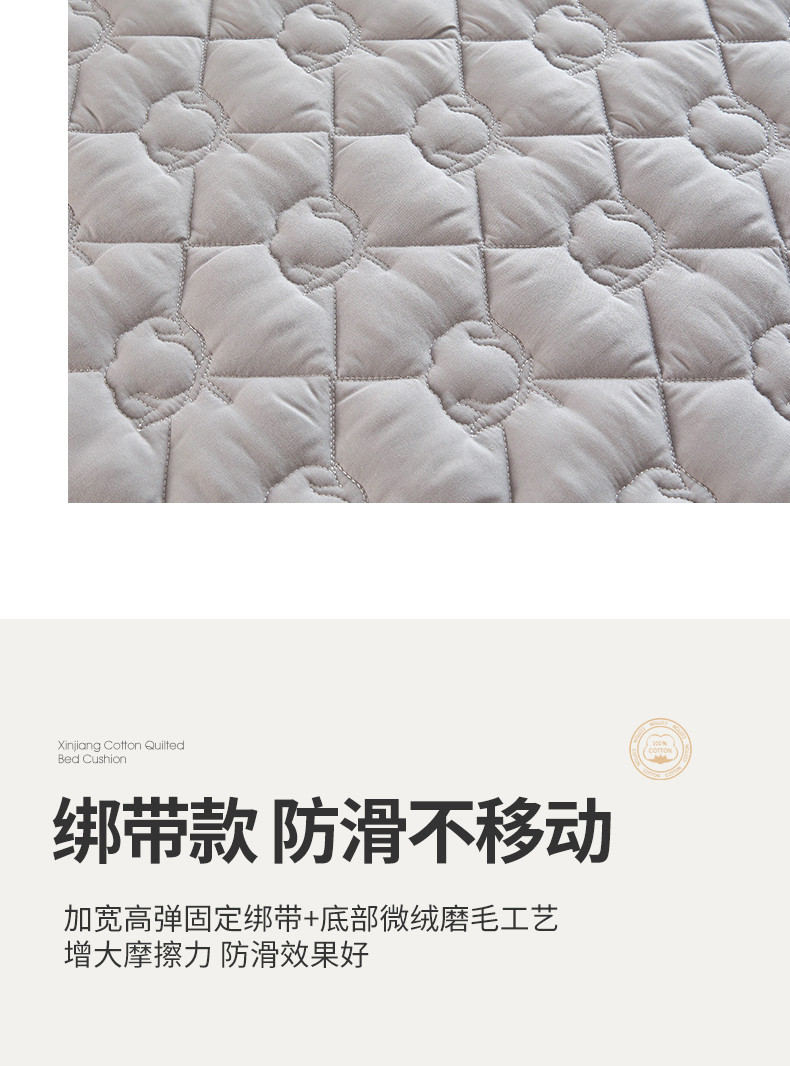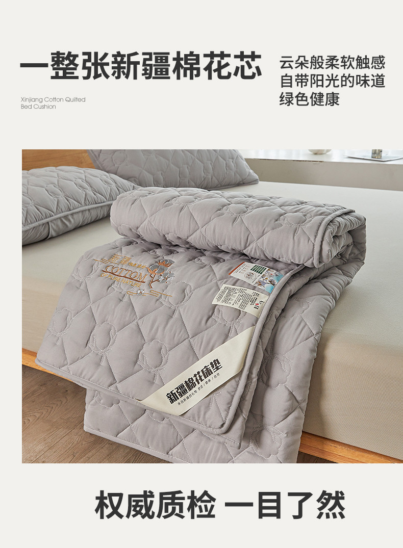 (总)西域种棉人·千百笠 2023新款100%新疆棉花全棉棉花床垫单人垫被,贵族秋,贵族灰