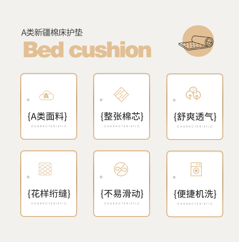100%新疆棉花全棉棉花床垫软垫棉絮垫子床褥垫子学生单人垫被全棉包检测,米色