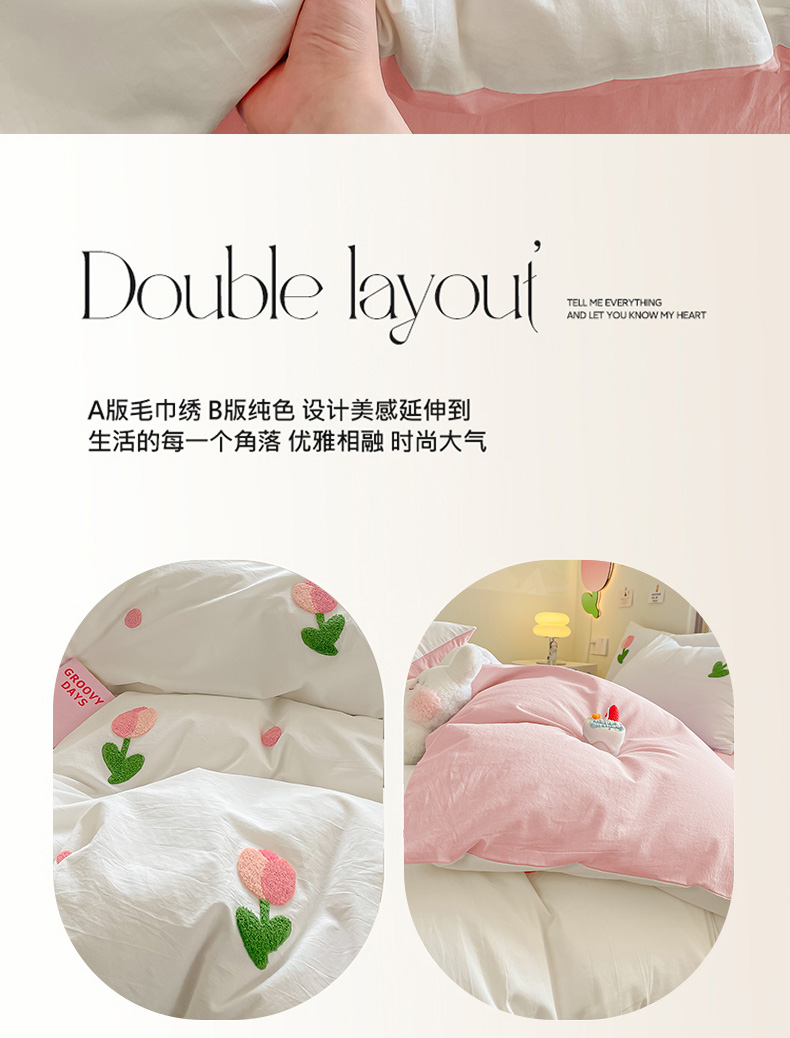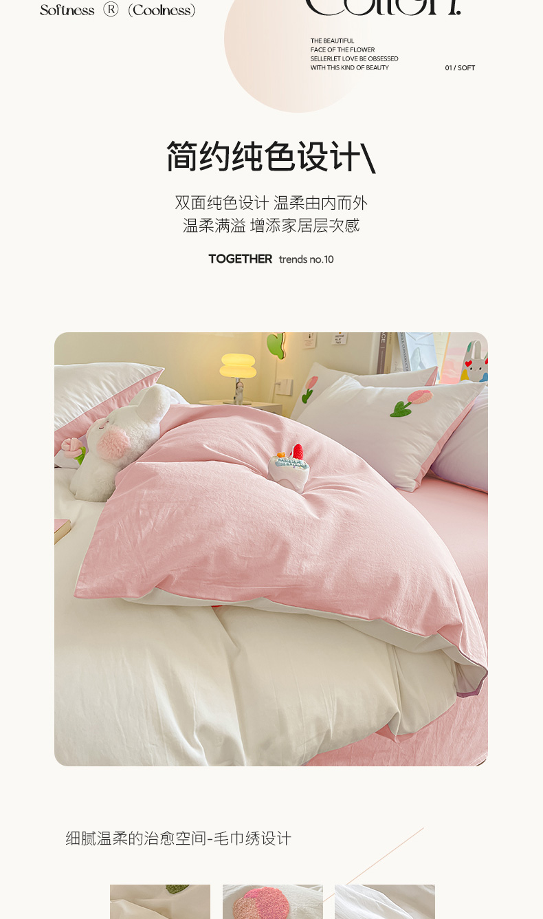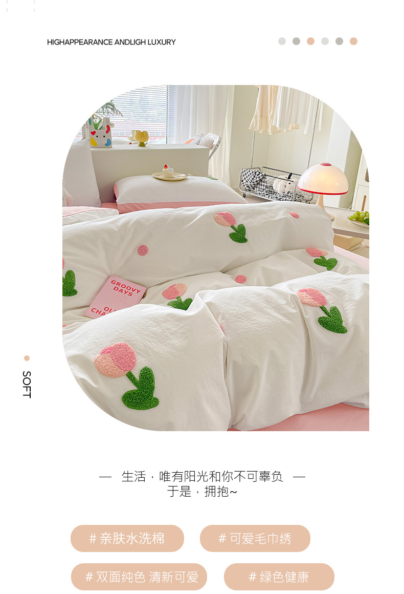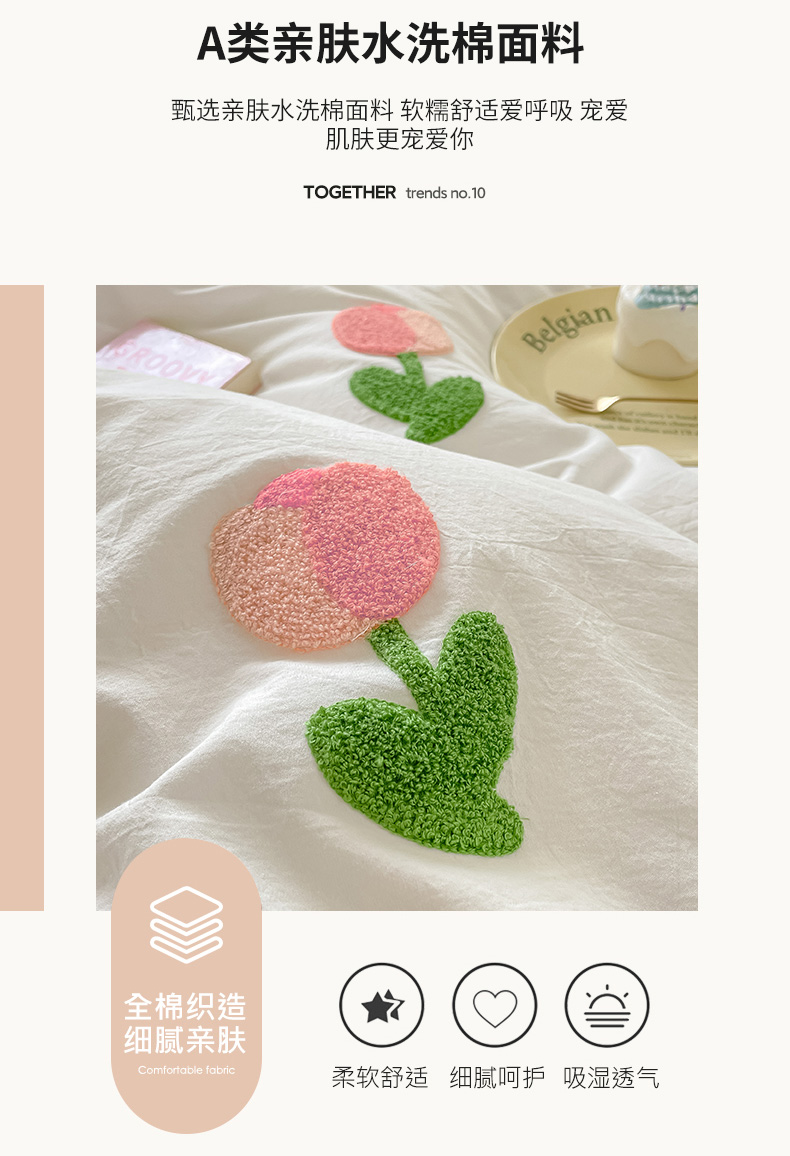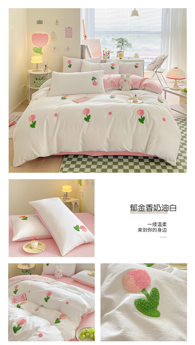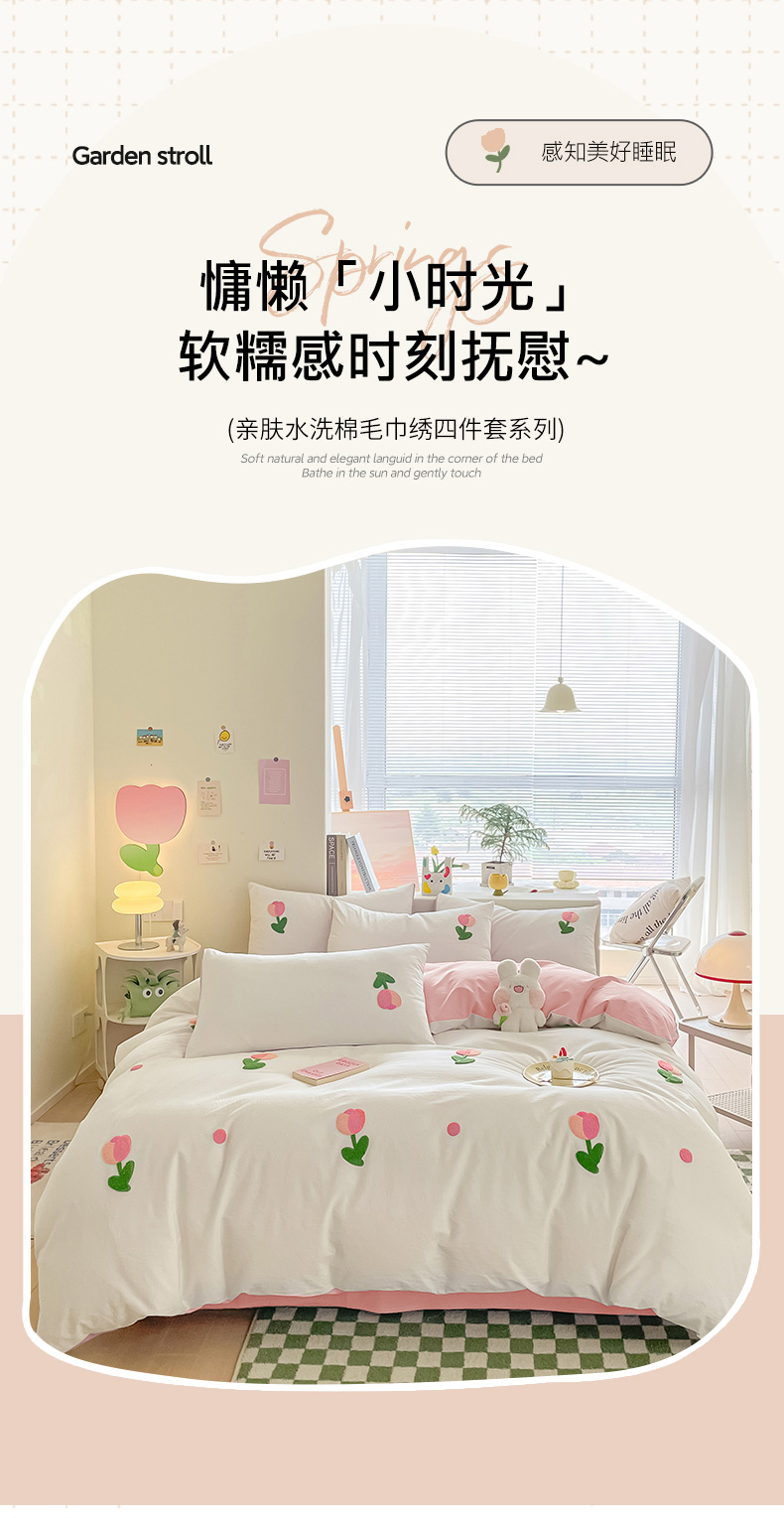 当前位置: 91家纺网 > 商品网购 > 床品套件 > 四件套 > 毛巾绣四件套 > 眠帛家居 2023新款A类水洗棉毛巾绣四件套 郁金香奶油白