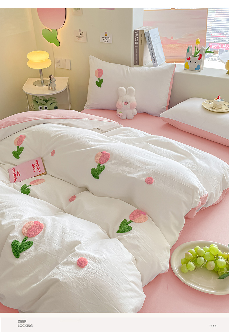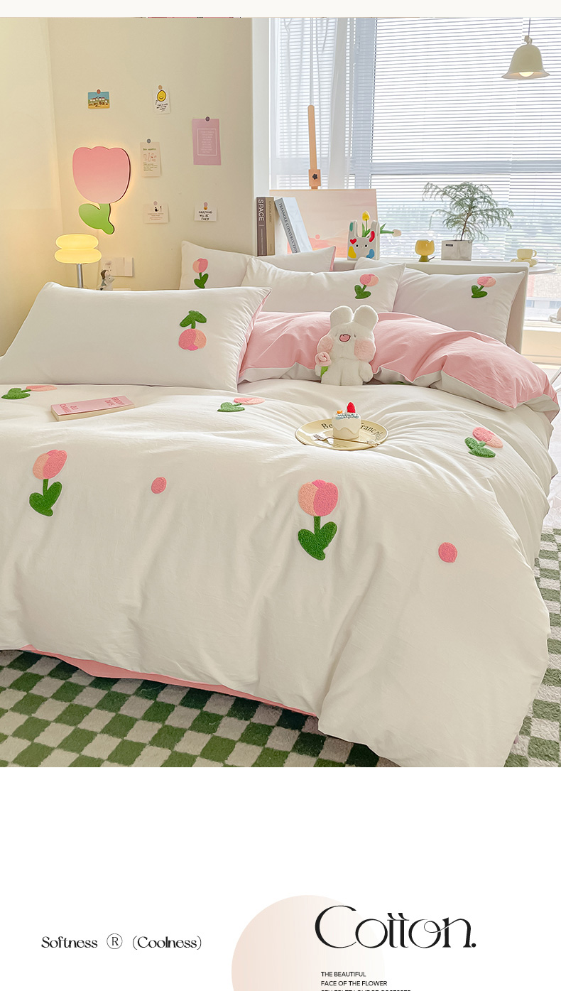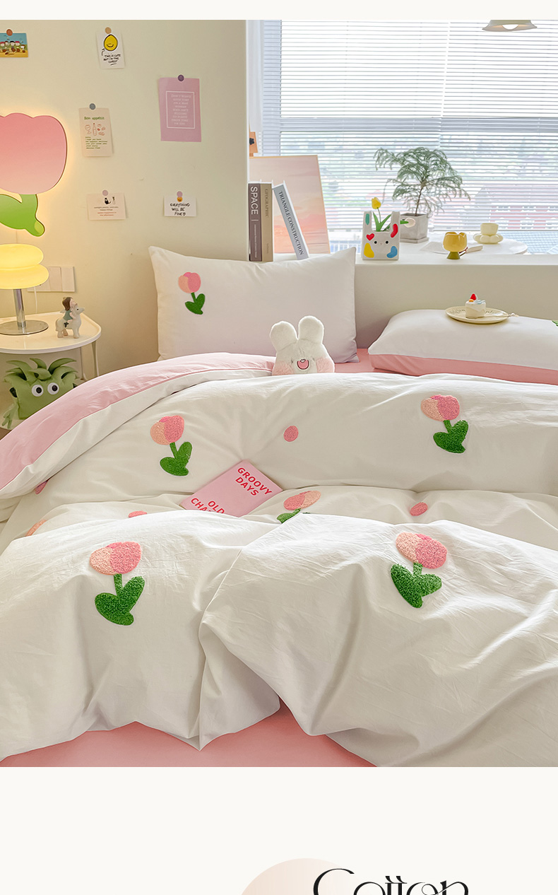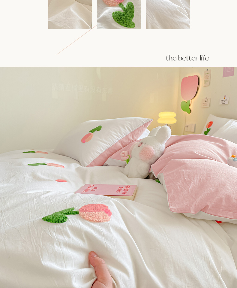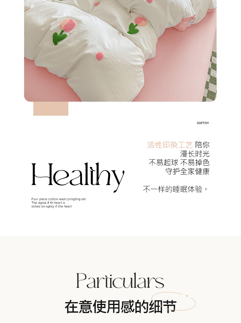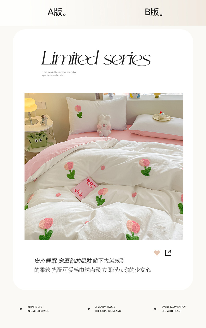 当前位置: 91家纺网 > 商品网购 > 床品套件 > 四件套 > 毛巾绣四件套 > 眠帛家居 2023新款A类水洗棉毛巾绣四件套 郁金香奶油白