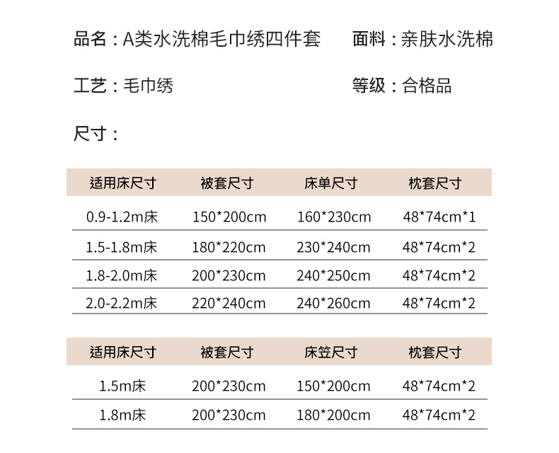 1.8m床笠款四件套(被套200*230) | ¥80.00 |