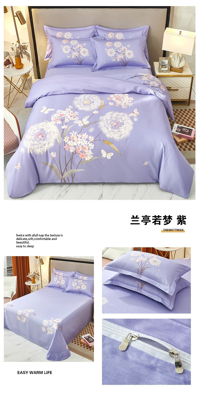 商品名称:雲归梦 2023年新款加厚全棉生态磨毛大版四件套 兰亭若梦-紫