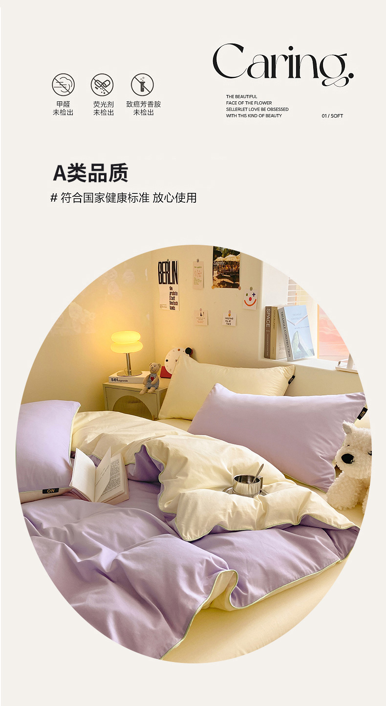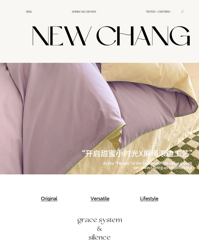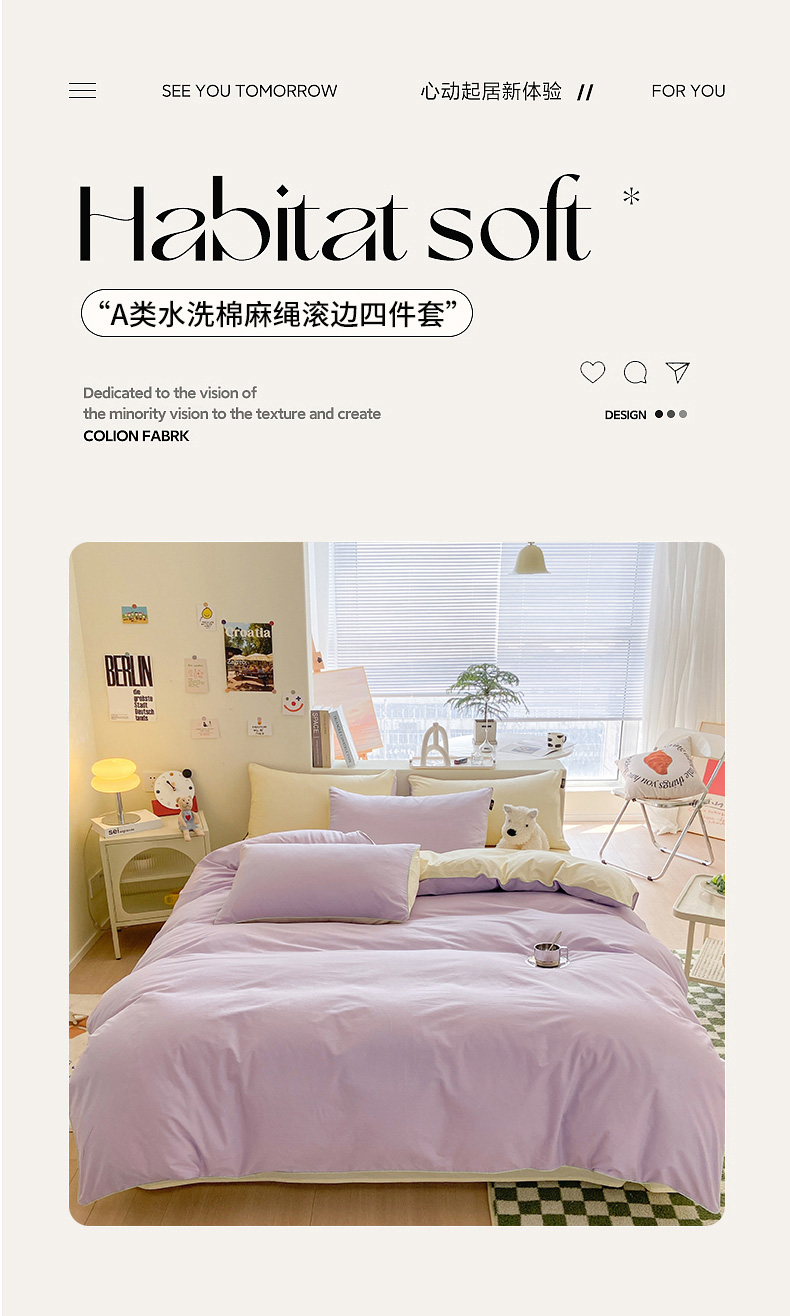 当前位置: 91家纺网 > 商品网购 > 床品套件 > 四件套 > 水洗棉四件套 > 眠帛家居 2023新款A类芝士系列水洗棉麻绳滚边四件套 芝士浅紫奶昔白
