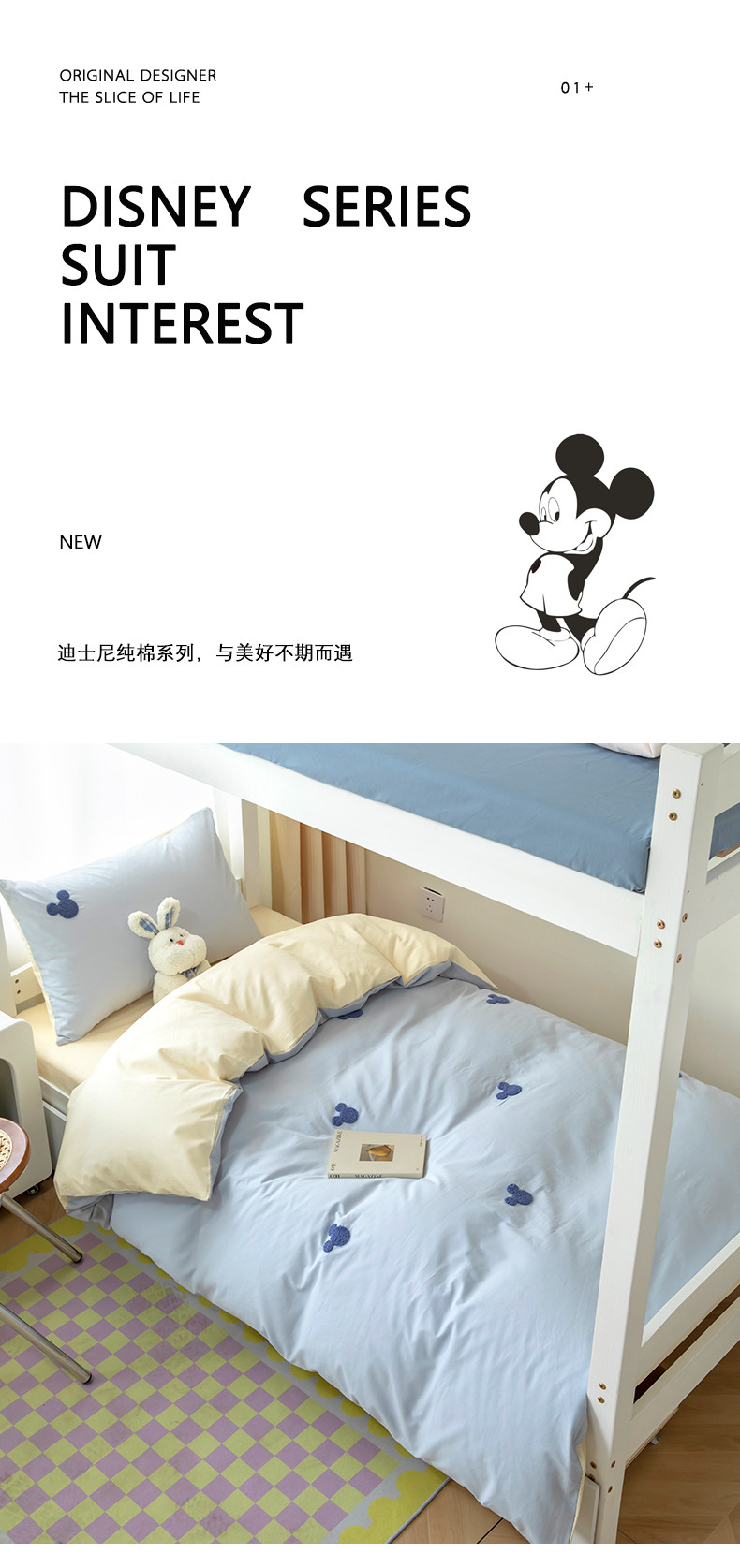 Mr.pig猪先生2023新款迪士尼全棉水洗棉小清新四件套米奇双拼蓝色
