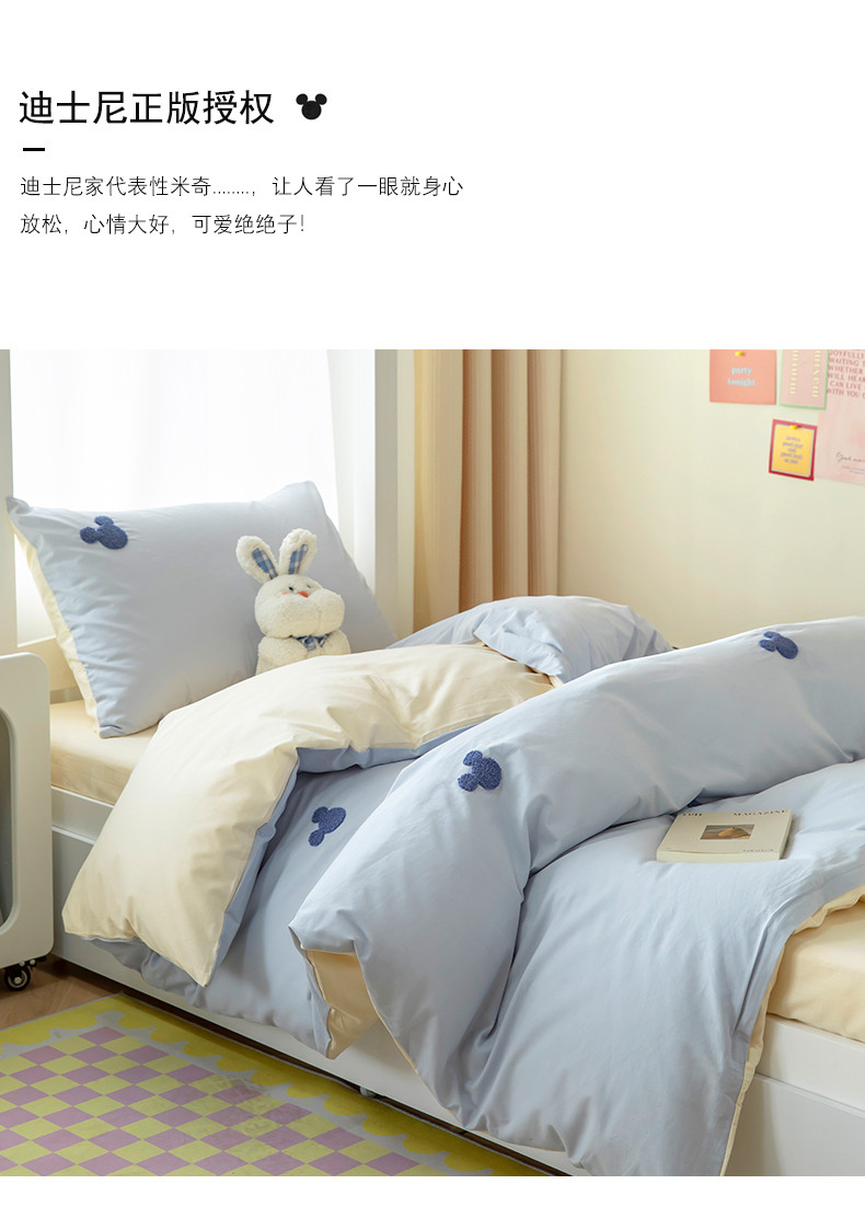 商品名称:Mr.pig猪先生2023新款迪士尼全棉水洗棉小清新四件套米奇双拼蓝色