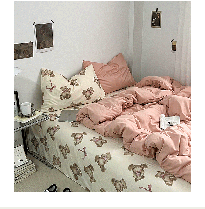 当前位置: 91家纺网 > 商品网购 > 床品套件 > 四件套 > 水洗棉四件套 > 直播热款A类水洗棉双层纱四件套纯色小碎花被套床笠三件套 粉玉+童话