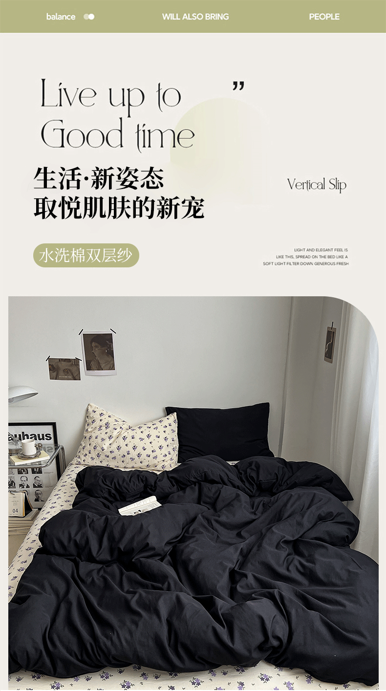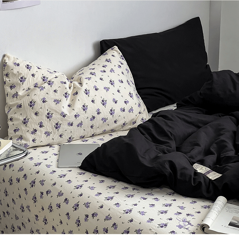 当前位置: 91家纺网 > 商品网购 > 床品套件 > 四件套 > 水洗棉四件套 > 直播热款A类水洗棉双层纱四件套纯色小碎花被套床笠三件套 闪耀黑+花园兔