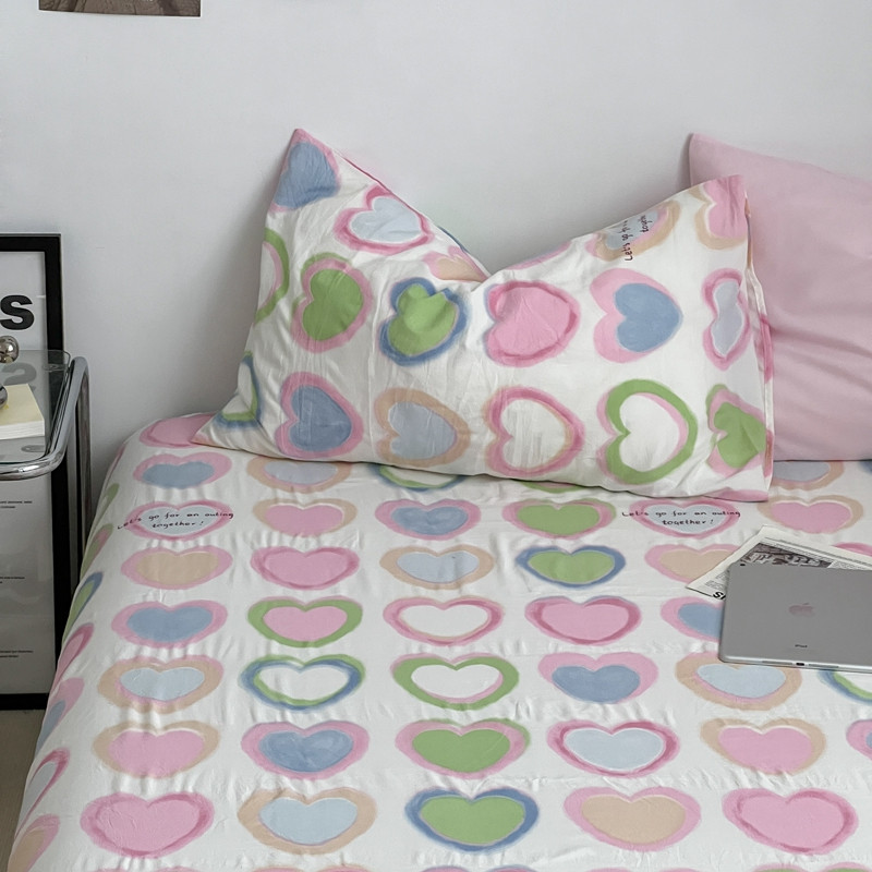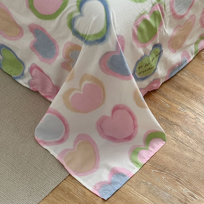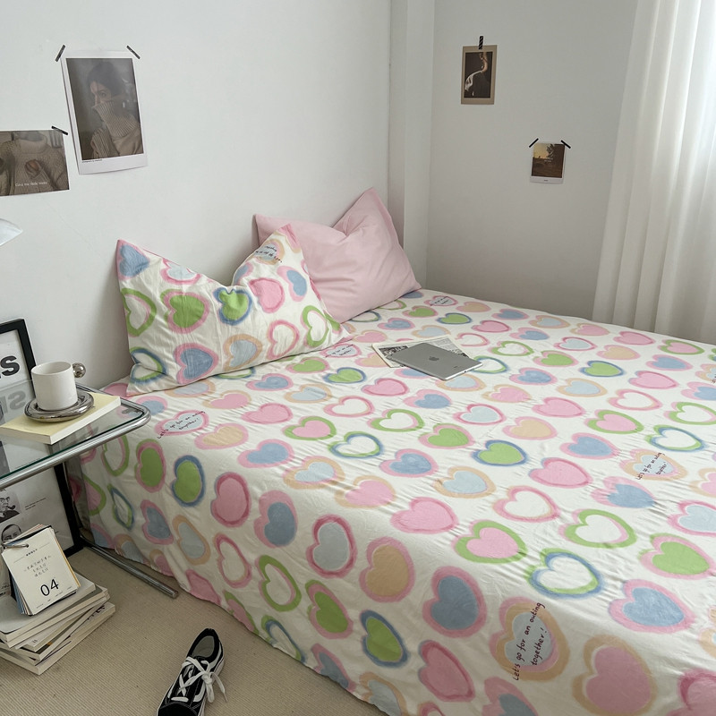 直播热款水洗棉双层纱四件套碎花简约风床单单品单件 奶粉+小幸运