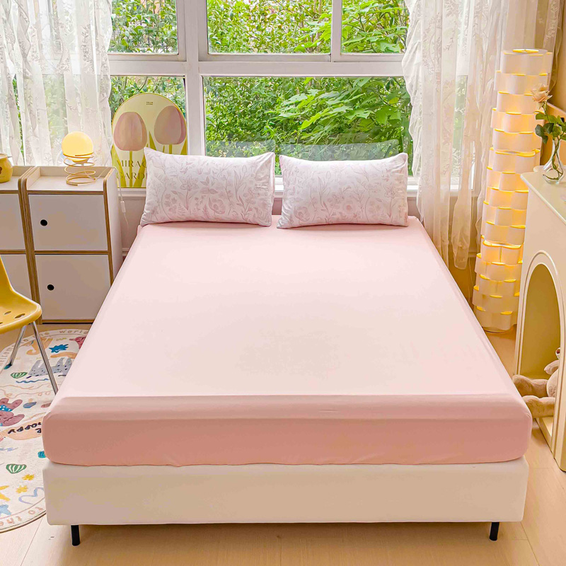 优选良品 2025新款韩版轻奢皱皱纱水洗棉拼色床单床笠四件套三件套-黛粉,黛粉