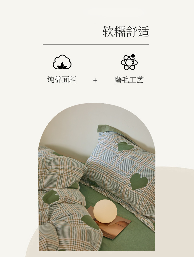 商品名称:柠馨 2023新款全棉3221磨毛印花四件套 心语心愿