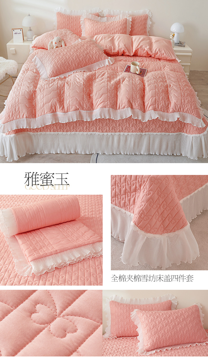(总)宜凡家纺 2025新款兔绒提花牛奶绒夹棉床裙四件套,爱心 少女粉,爱心 粉紫,爱心 驼色,蝶舞 大红,蝶舞 米色,蝶舞 浅紫,蝶舞 玉色,简爱 苍青,简爱 豆沙紫,简爱 玉色,樱桃 苍青,樱桃 豆沙紫,樱桃 奶油白