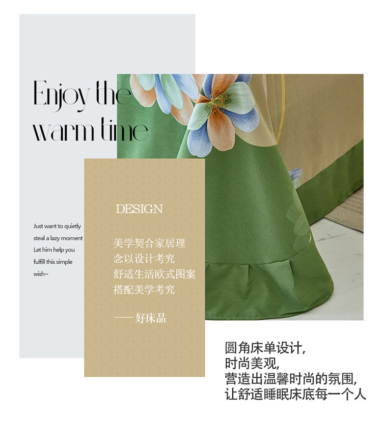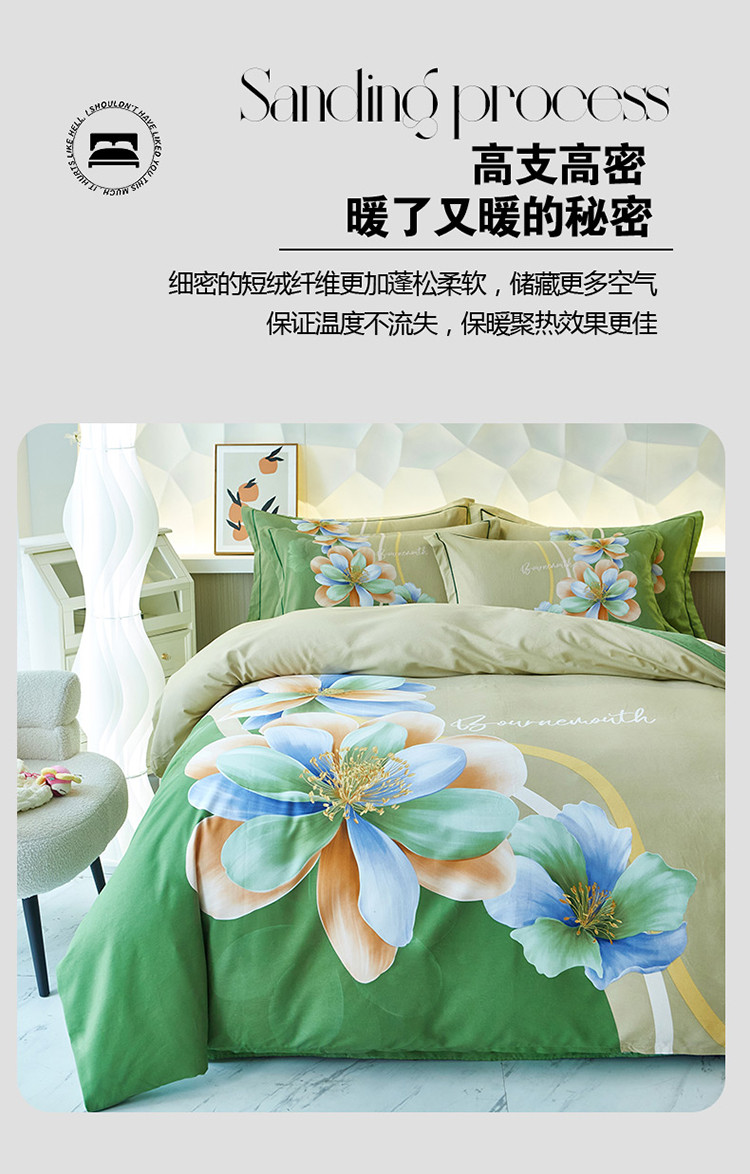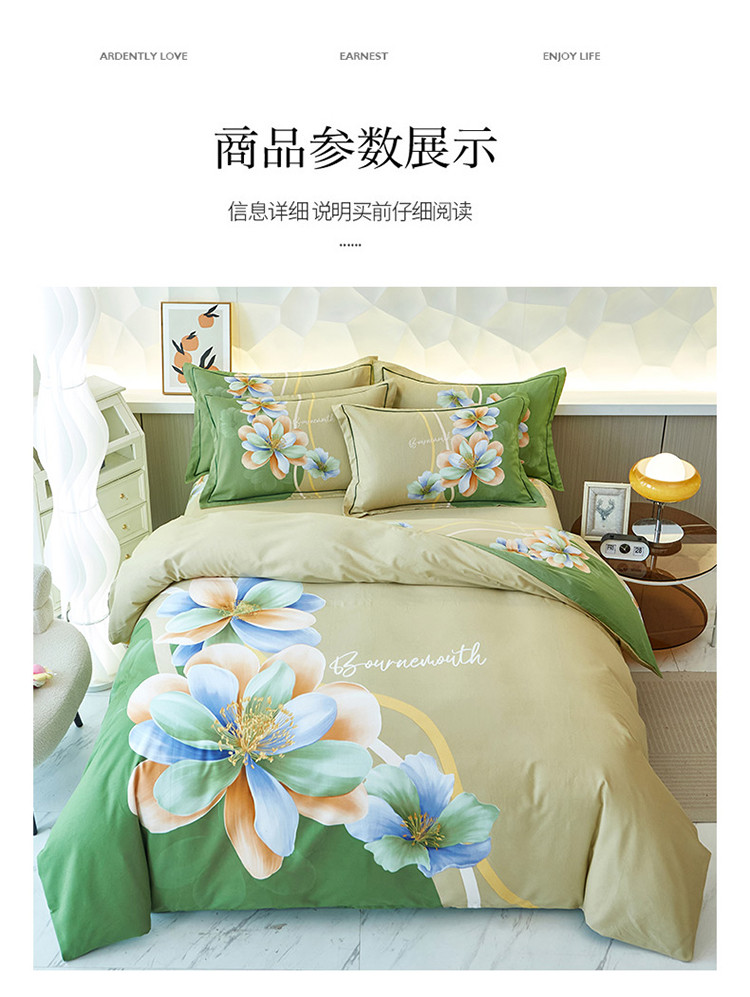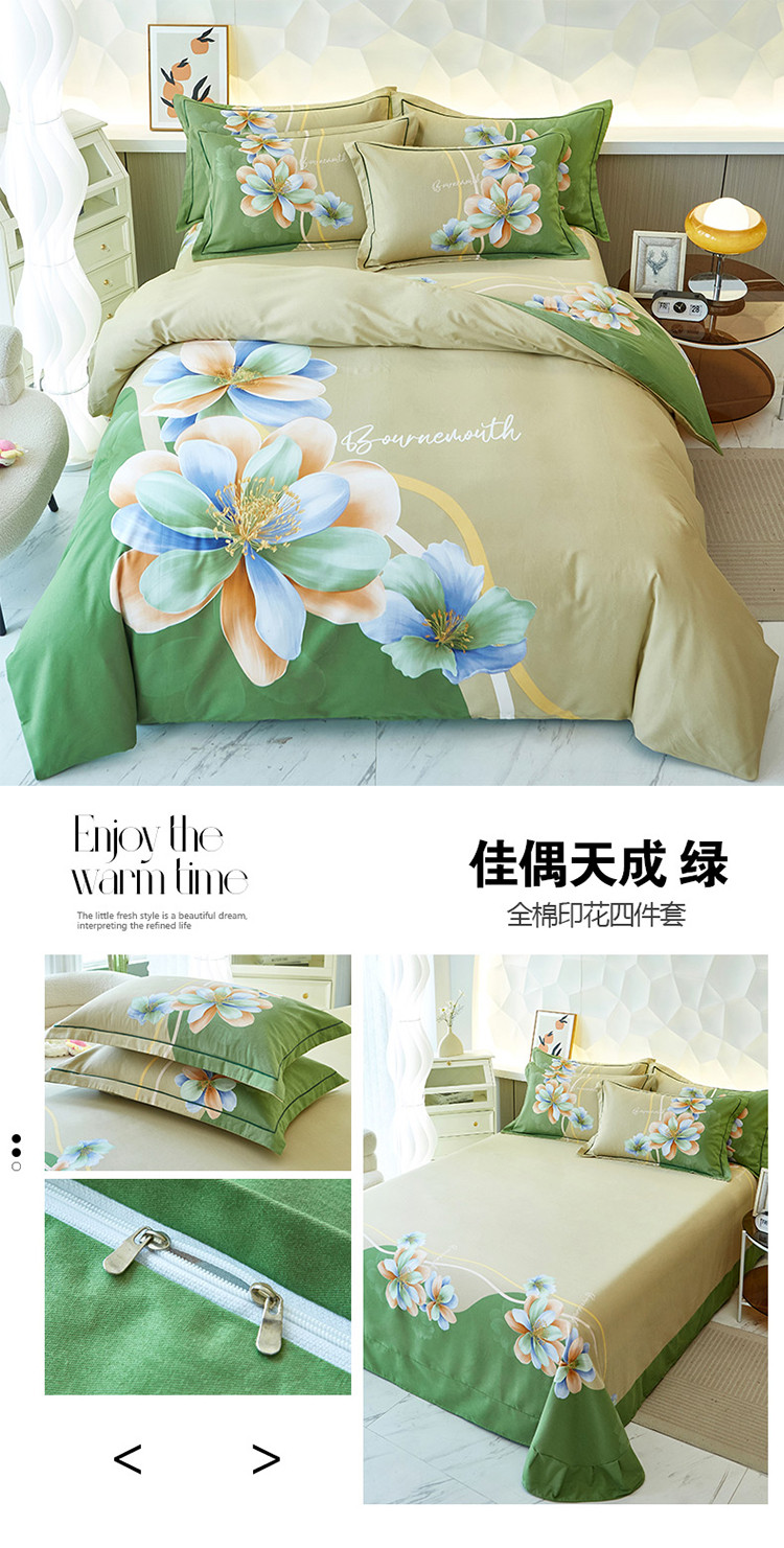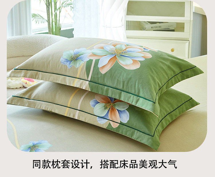 商品名称:雲归梦 2023年新款加厚全棉生态磨毛大版四件套 佳偶天成绿