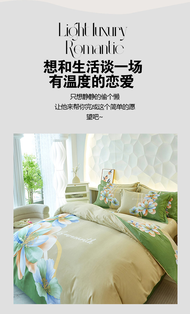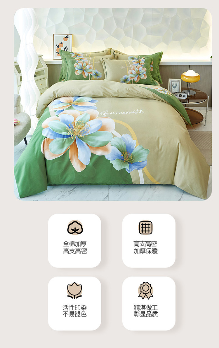 雲归梦 2023年新款加厚全棉生态磨毛大版四件套 佳偶天成绿