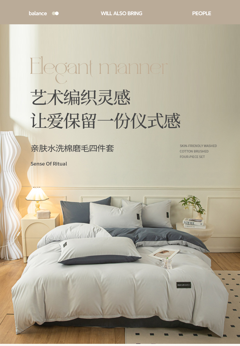 当前位置: 91家纺网 > 商品网购 > 床品套件 > 四件套 > 水洗棉四件套 > 欣晴家纺 2023新品亲肤水洗棉磨毛织标系列三件套四件套 银灰+深灰