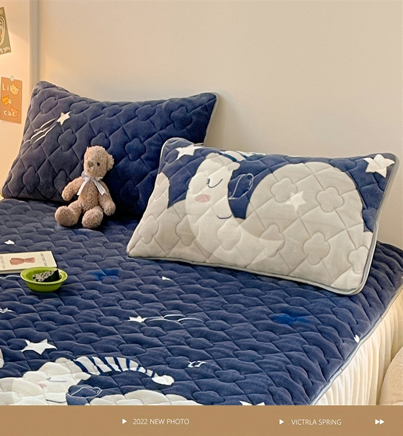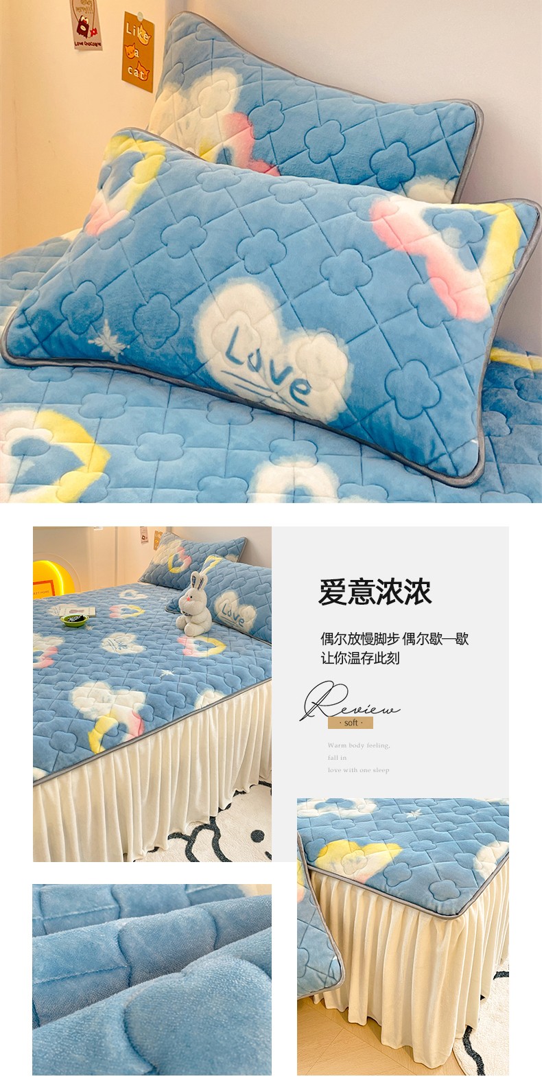 (总)圣比熊 2025新款A类云朵棉加牛奶绒双面夹棉床盖床垫保护套床垫保护罩三件套,格子小熊,蝴蝶仙子,豹纹粉,动物乐园,粉红凯蒂,萝卜小姐,南瓜橙,南瓜咖,索菲亚,唯美,屋顶花园,线条猫,小狗笨笨,樱桃