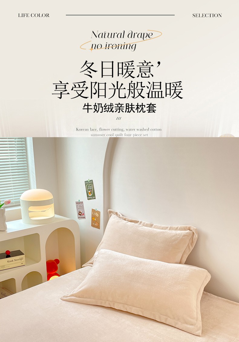 商品名称:梦舒羽 2025新款冬季牛奶绒枕套加厚加绒亲肤柔软枕芯套 米黄
