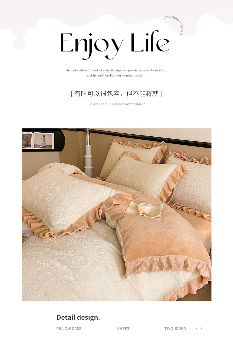 (总)金牛座家纺 2025新款立体雕花加厚牛奶绒刺绣拼接四件套【控价 售价请勿低于158】,花海,春见,蝶林,玫语