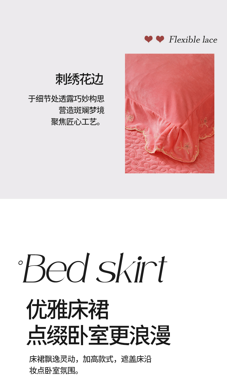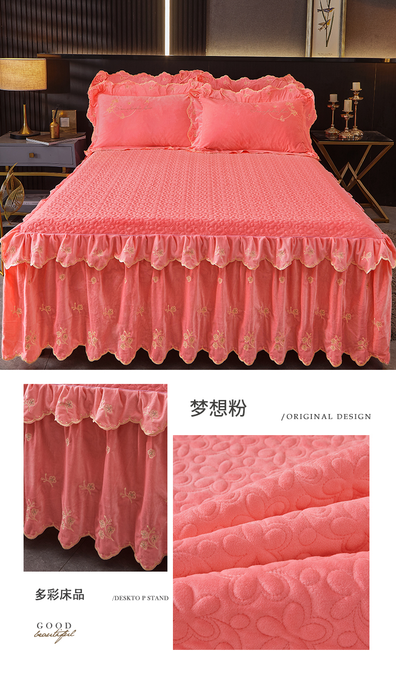 2023 恒爱家纺 花好月圆宝宝绒单床裙 梦想粉