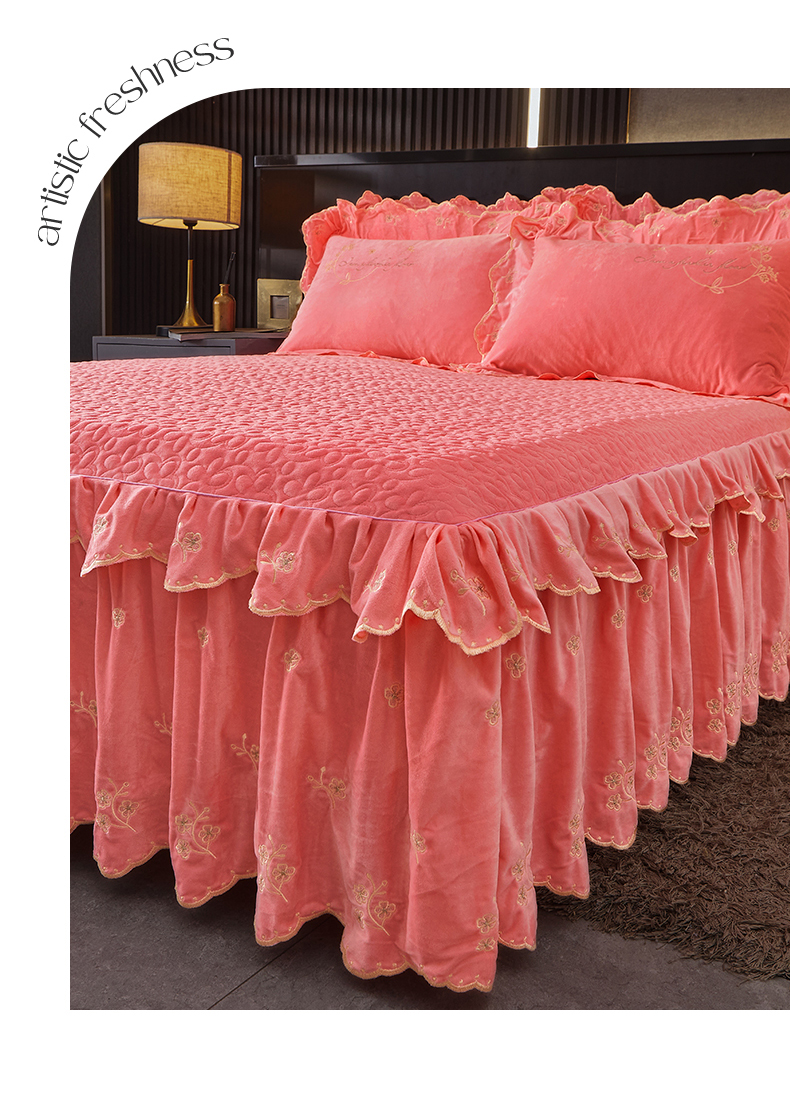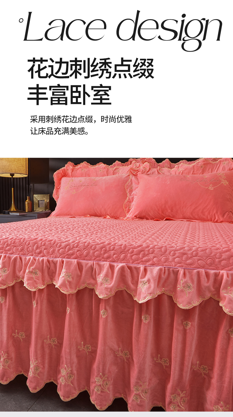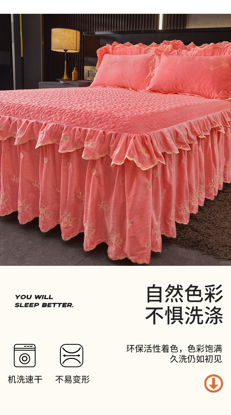 (总)恒爱 2022秋冬水晶绒翩翩花舞夹棉床裙四件套,大红色,豆沙红,橄榄绿,公主粉,桔色,咖啡色,孔雀绿,拉菲红,罗兰紫,玫红色,美人玉,米白色,米驼色,抹茶绿,浅灰色,紫色