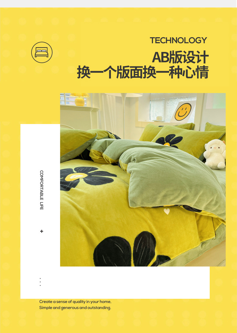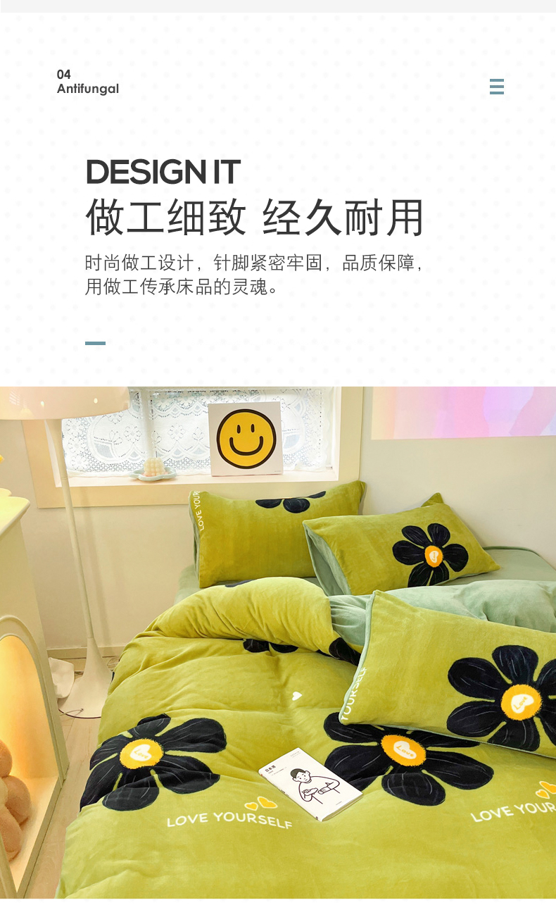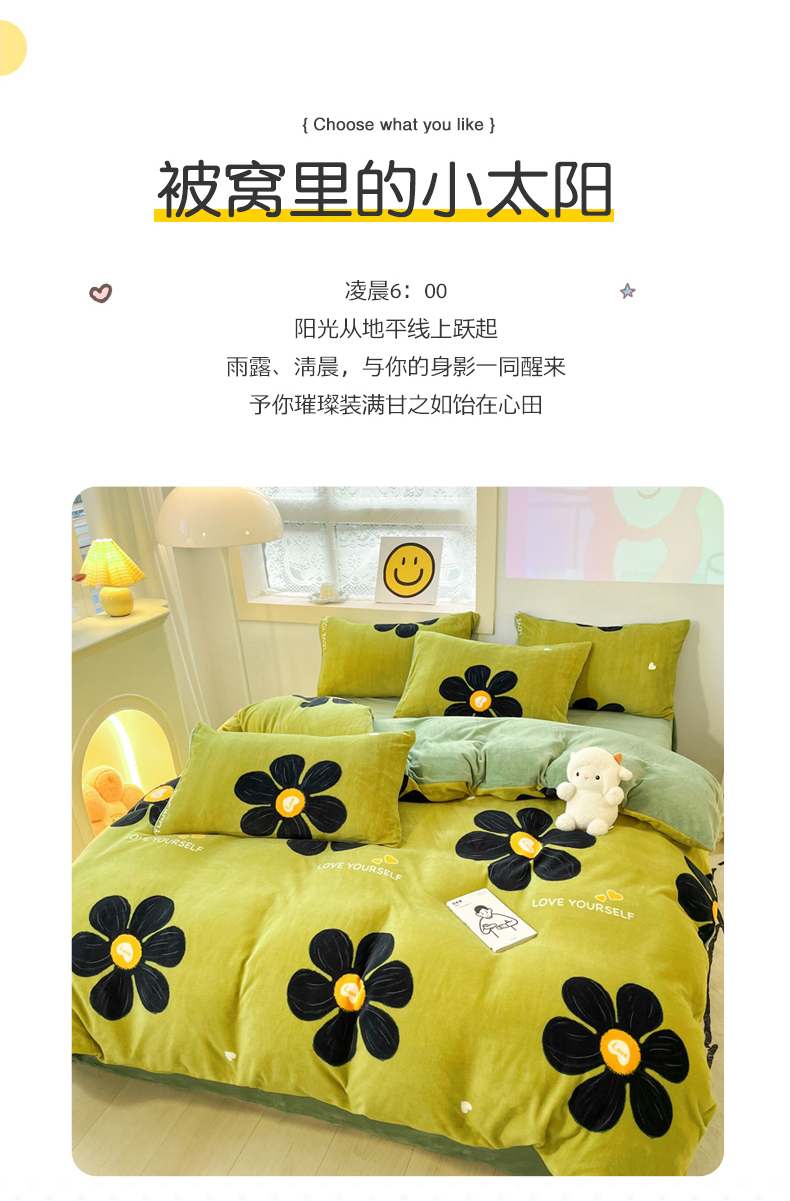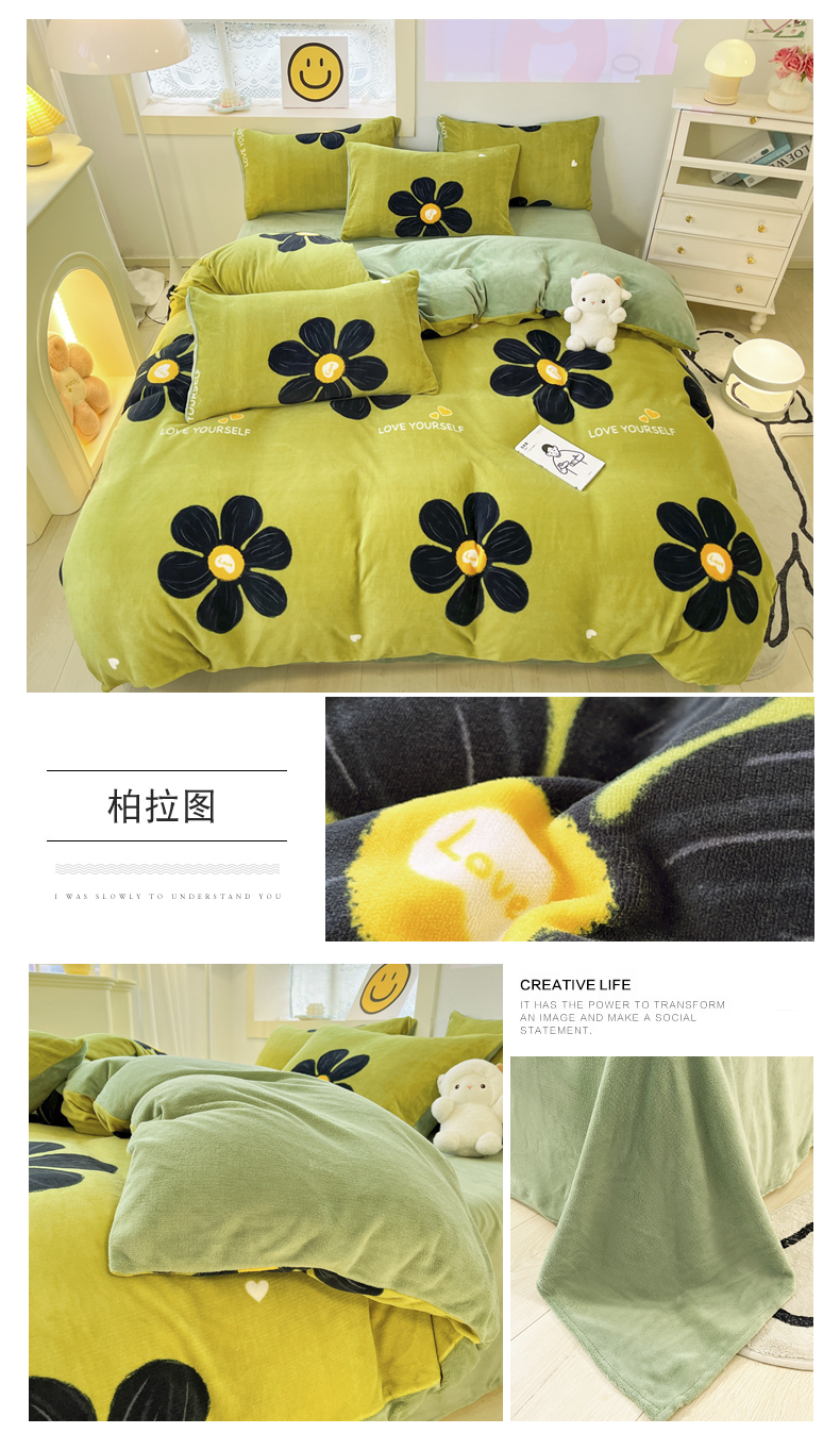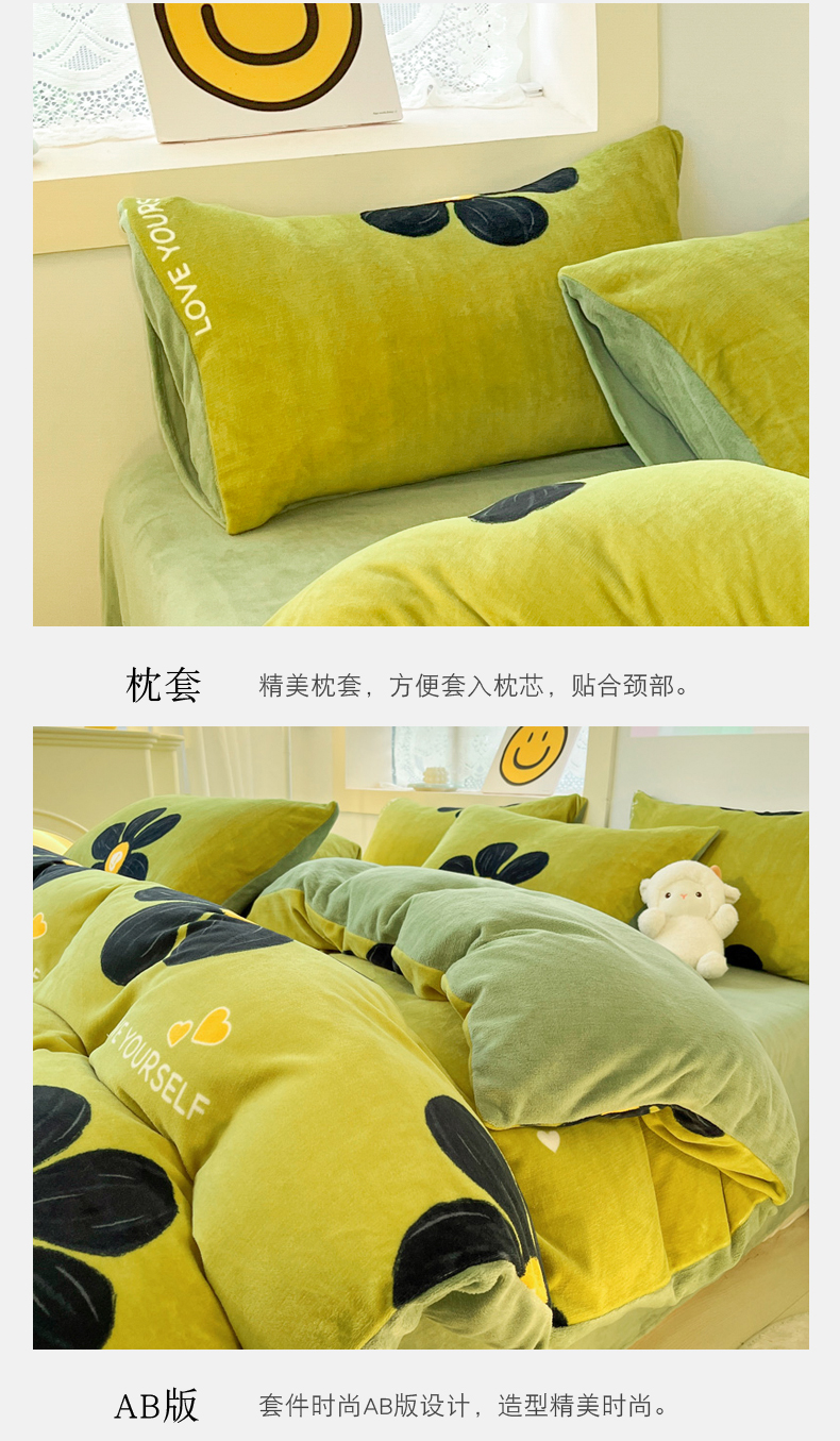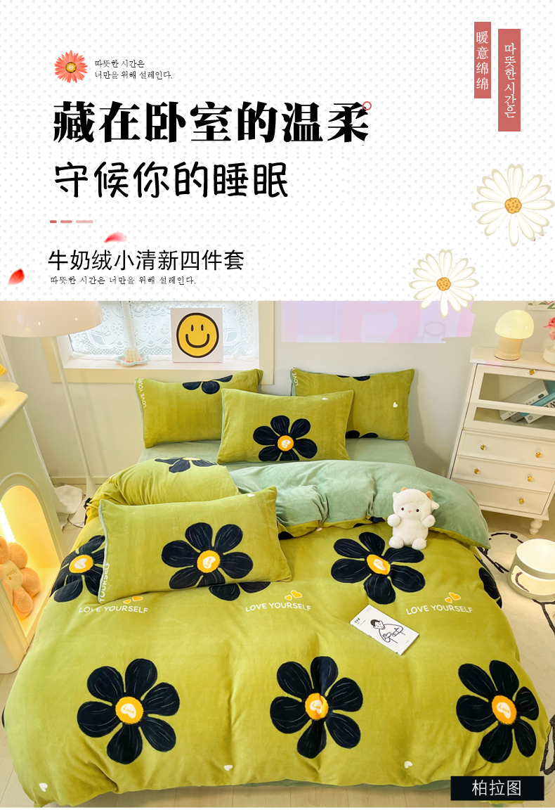 商品名称:金爱家 2023新款ins小清新韩系卡通少女心奶油兔子加厚牛奶绒系列四件套 柏拉图