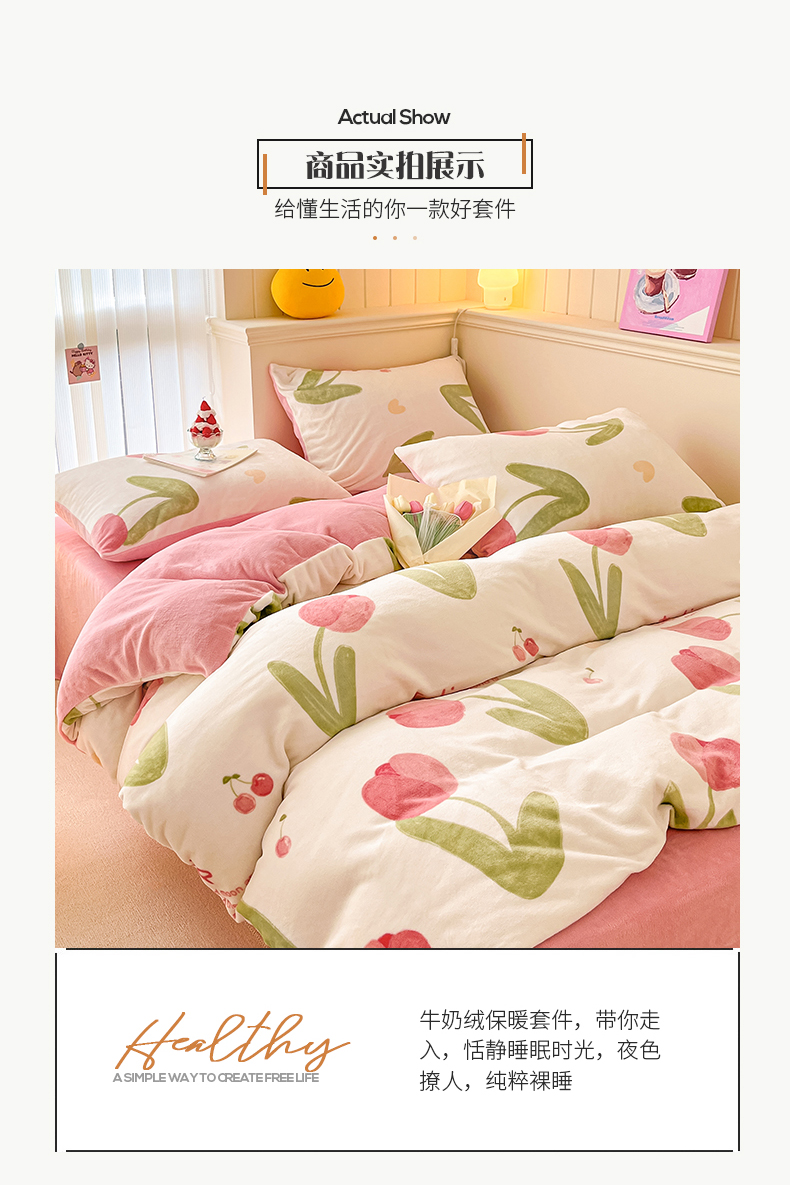 商品名称:金爱家 2023新款ins小清新韩系卡通少女心奶油兔子加厚牛奶绒系列四件套 绒-花漫