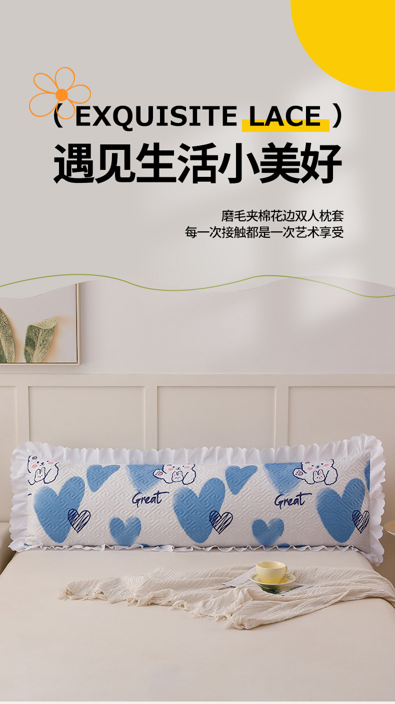 商品名称:艾兜坊 2023新款磨毛夹棉花边双人枕套 爱心熊