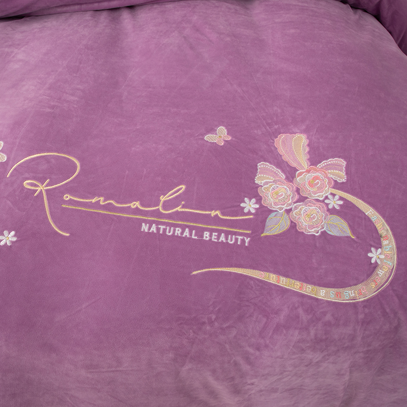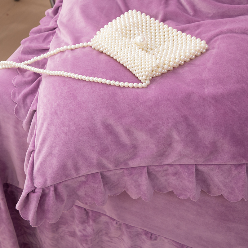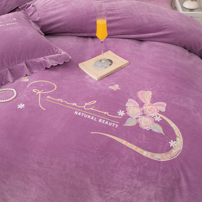 商品名称:优姿家纺 2024新品8.5斤德芙绒韩版床裙绣花保暖四件套 时尚玫瑰紫色