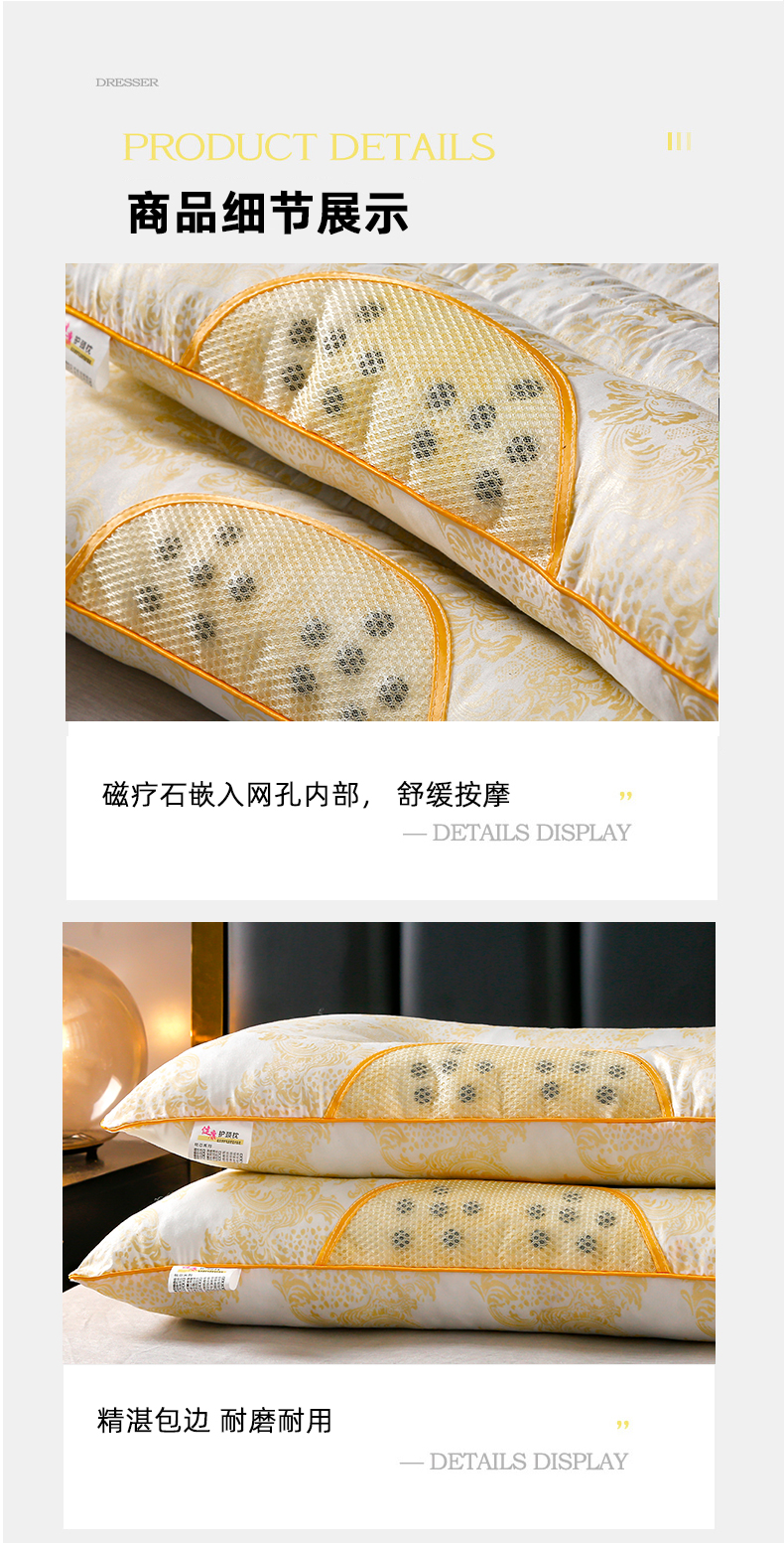 当前位置: 91家纺网 > 商品网购 > 枕头/枕芯/保健枕/颈椎枕 > 普通枕芯 > 芯宜佳 2023新款小半圆磁疗枕 土豪金小半圆74*48*10cm