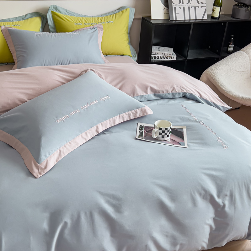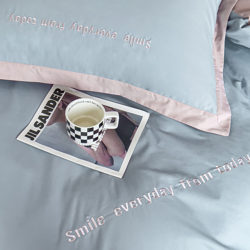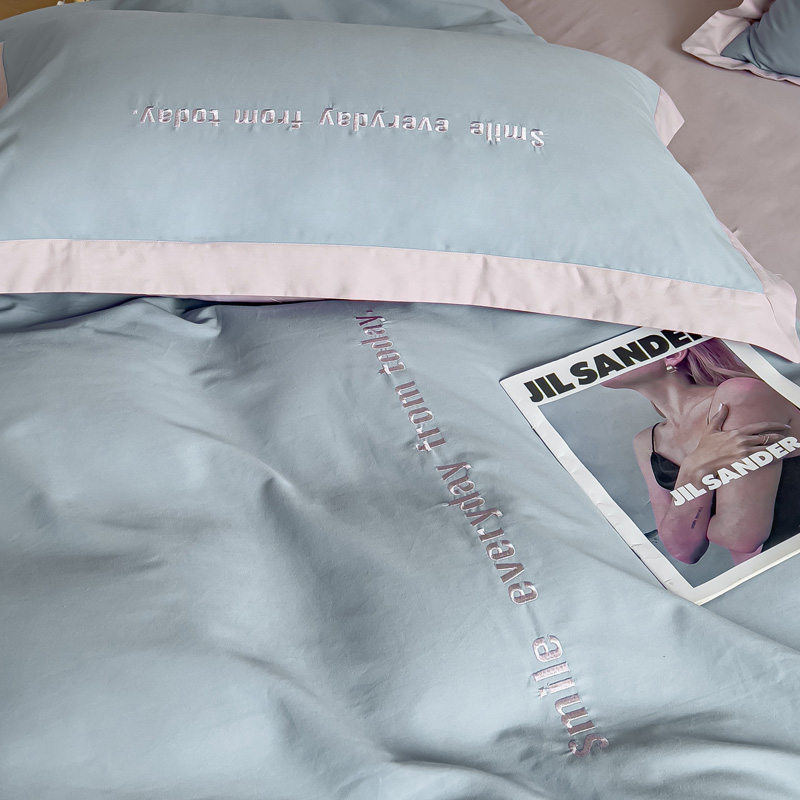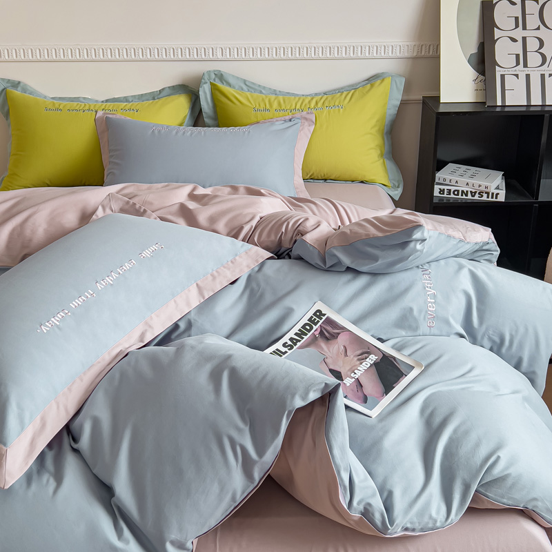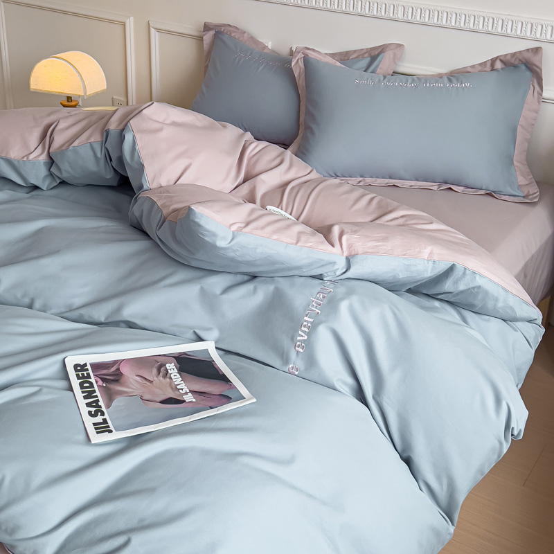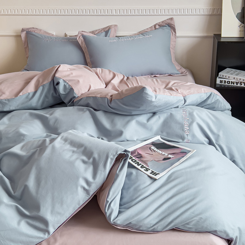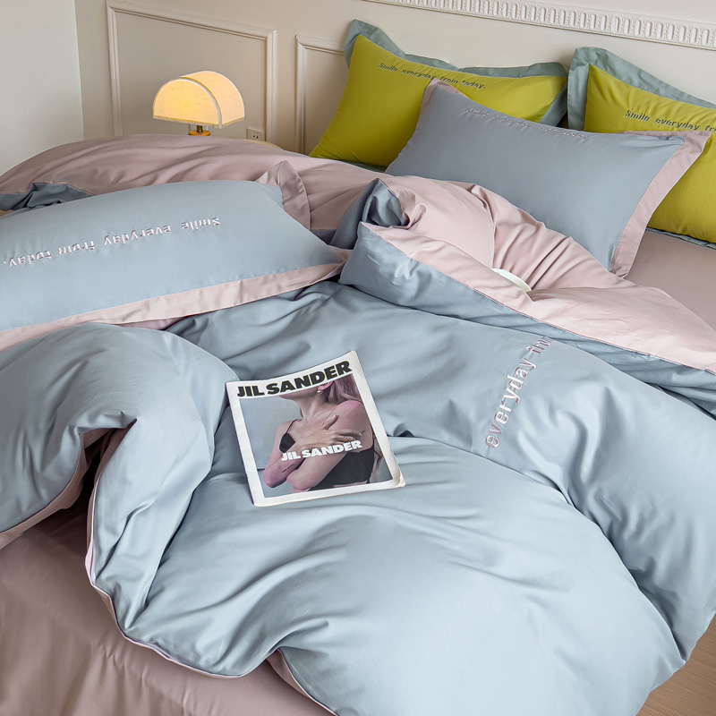 (总)嘉汀兰 2023新款60支全棉磨毛绣花撞色轻奢四件套—暮里,粉色,红灰色,芥绿色,浅灰色,深青色