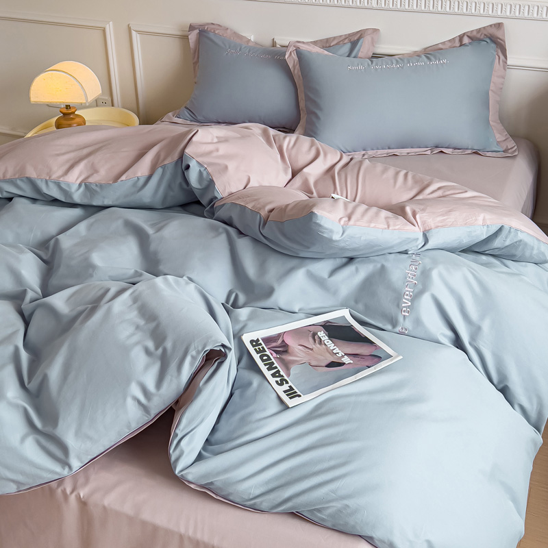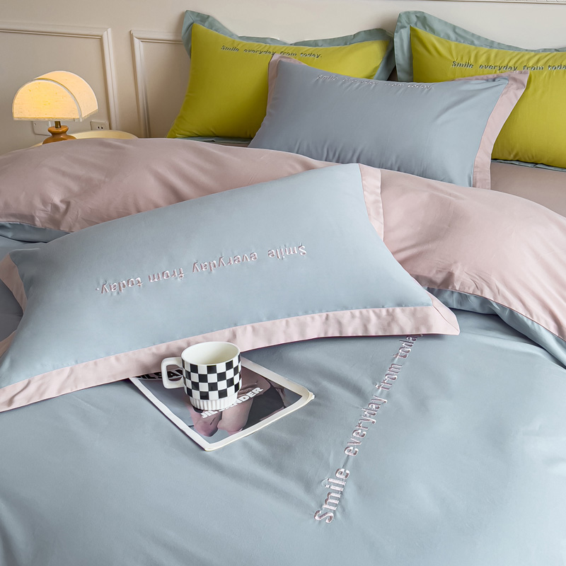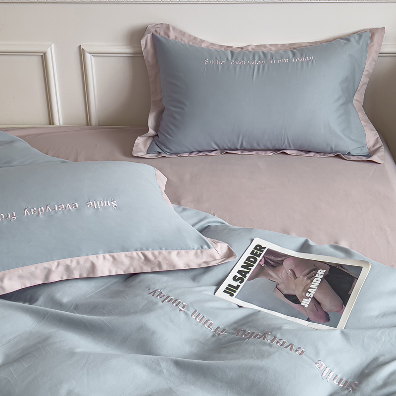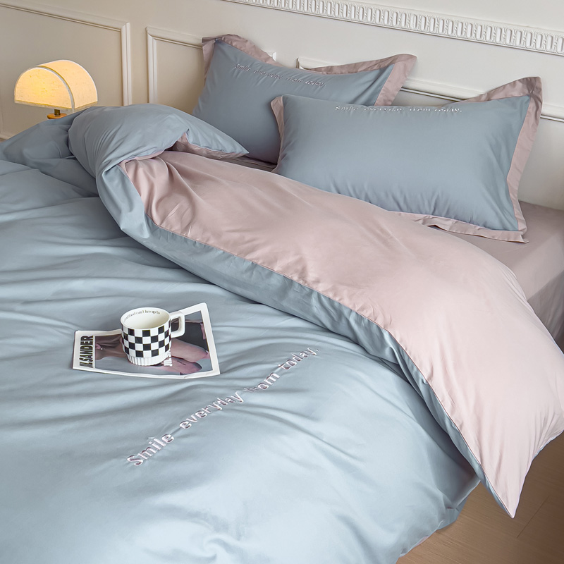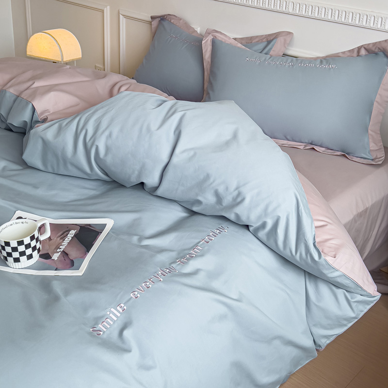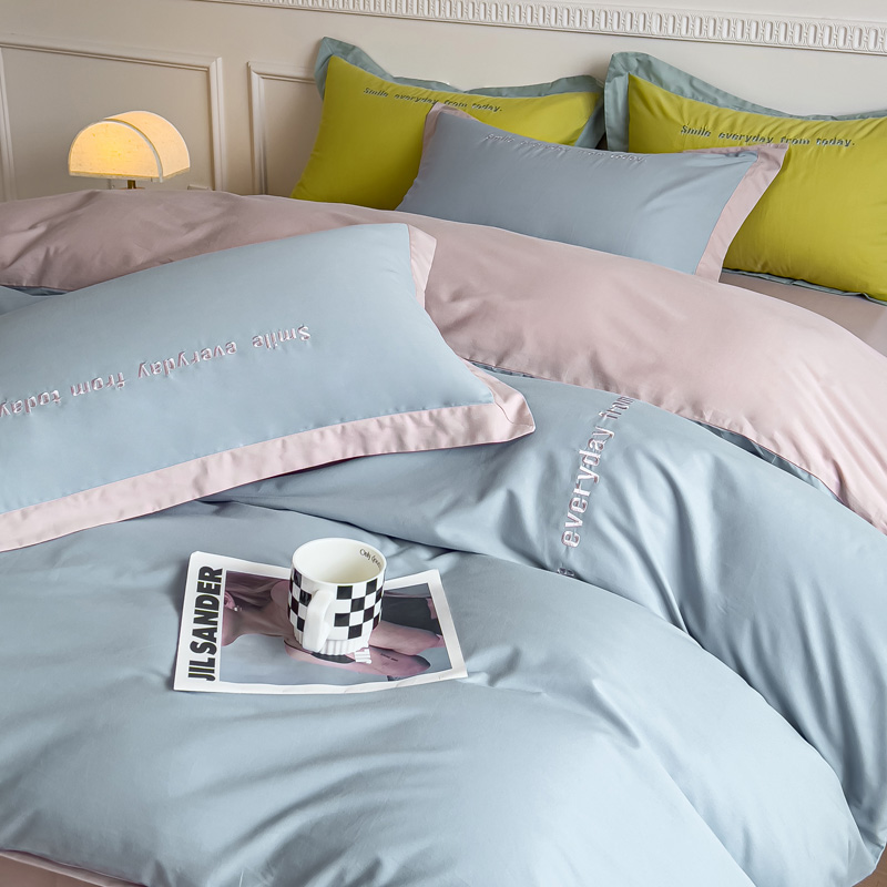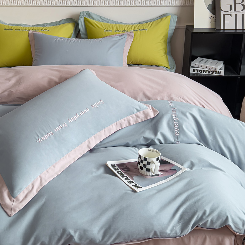 (总)嘉汀兰 2023新款60支全棉磨毛绣花撞色轻奢四件套—暮里,粉色,红灰色,芥绿色,浅灰色,深青色