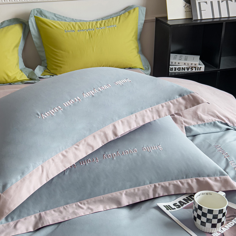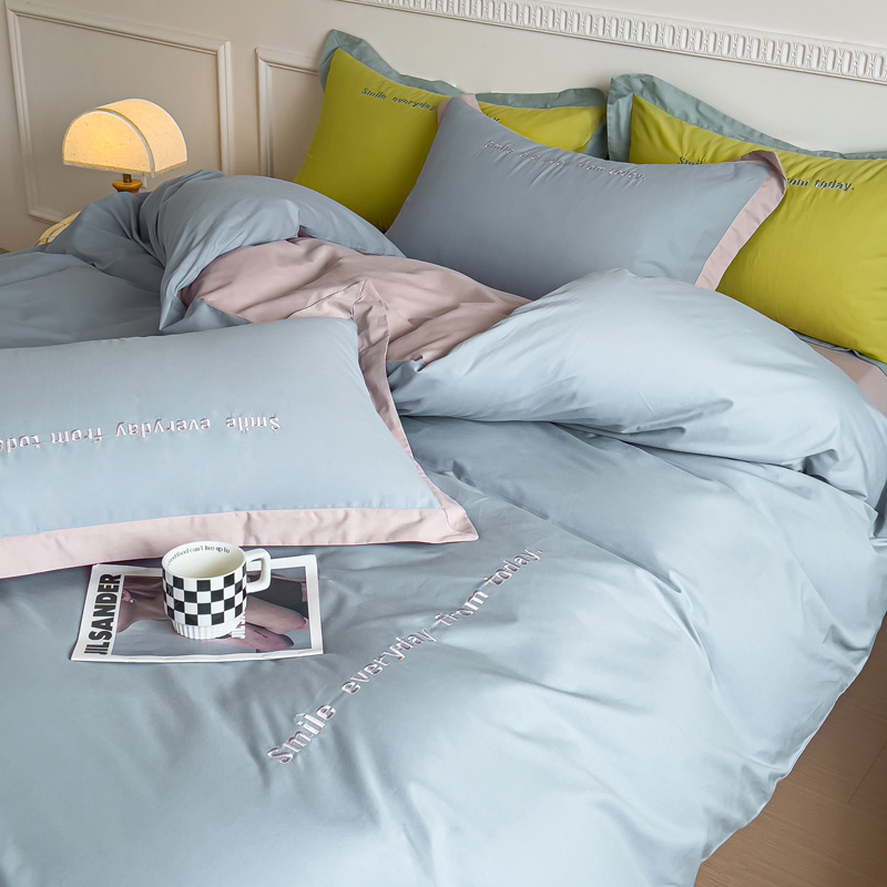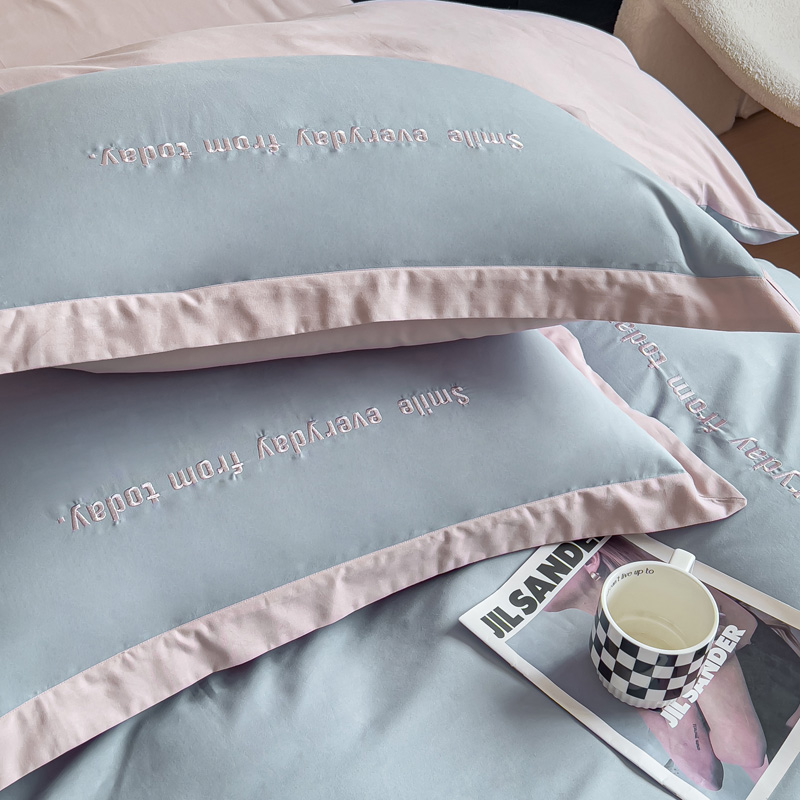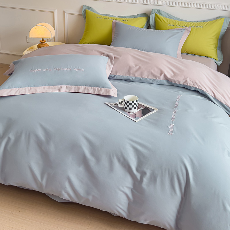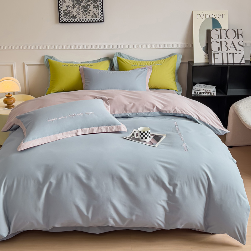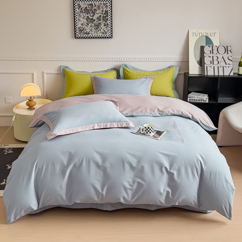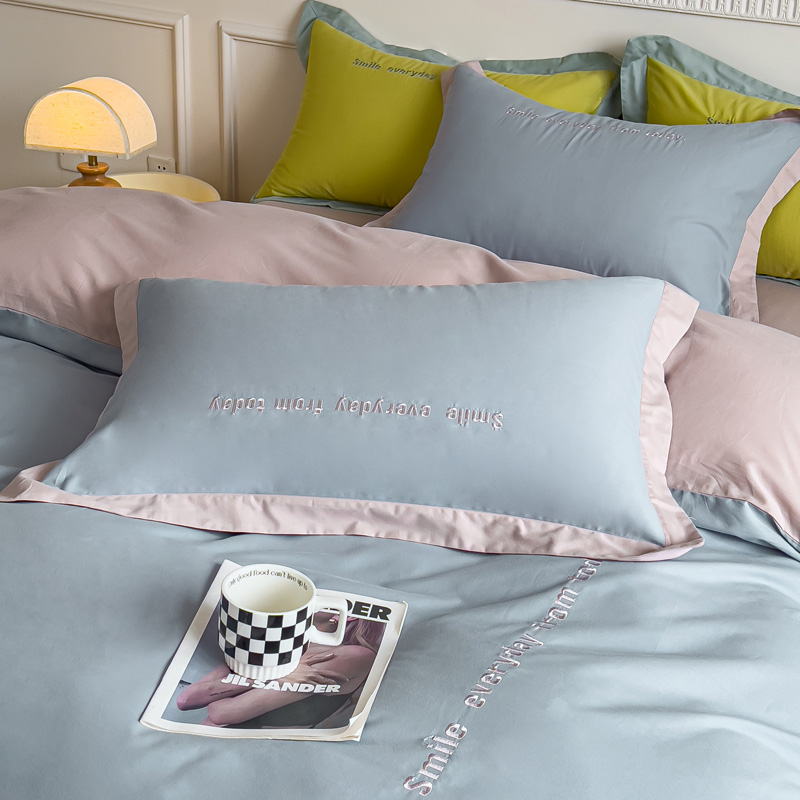 (总)嘉汀兰 2023新款60支全棉磨毛绣花撞色轻奢四件套—暮里,粉色,红灰色,芥绿色,浅灰色,深青色