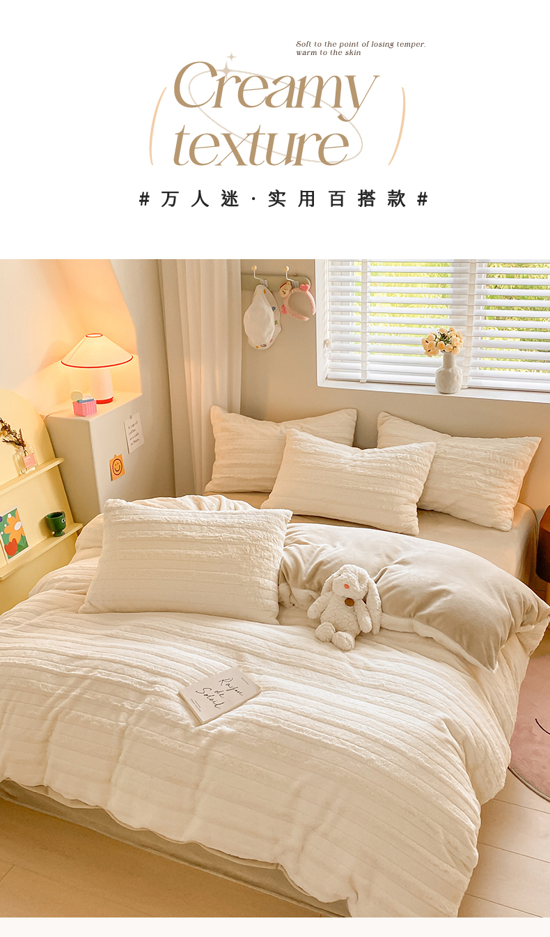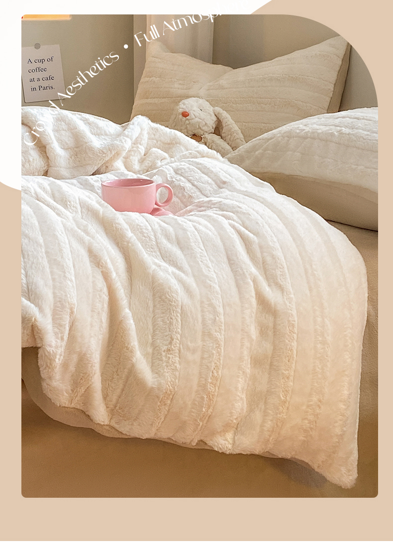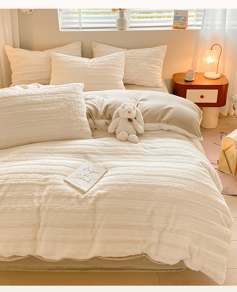 名兮 2023新款兔毛绒加厚四件套 条纹-白