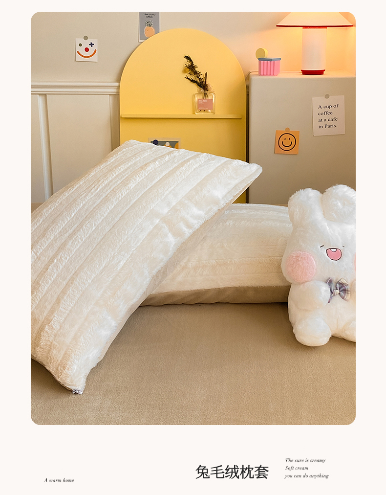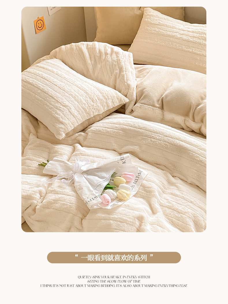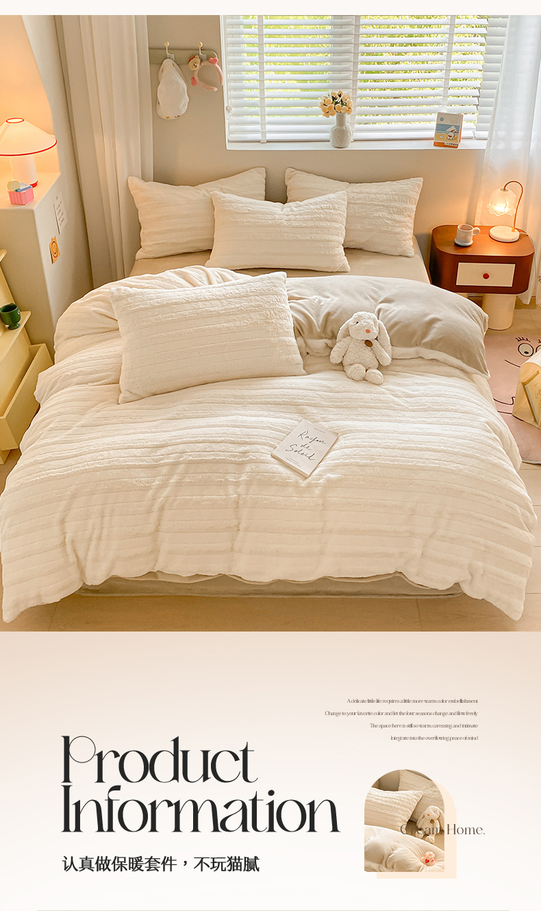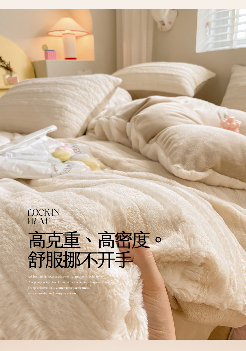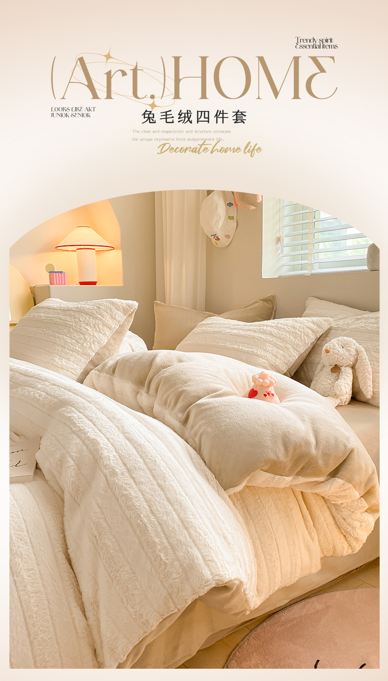 商品名称:名兮 2023新款兔毛绒加厚四件套 条纹-白