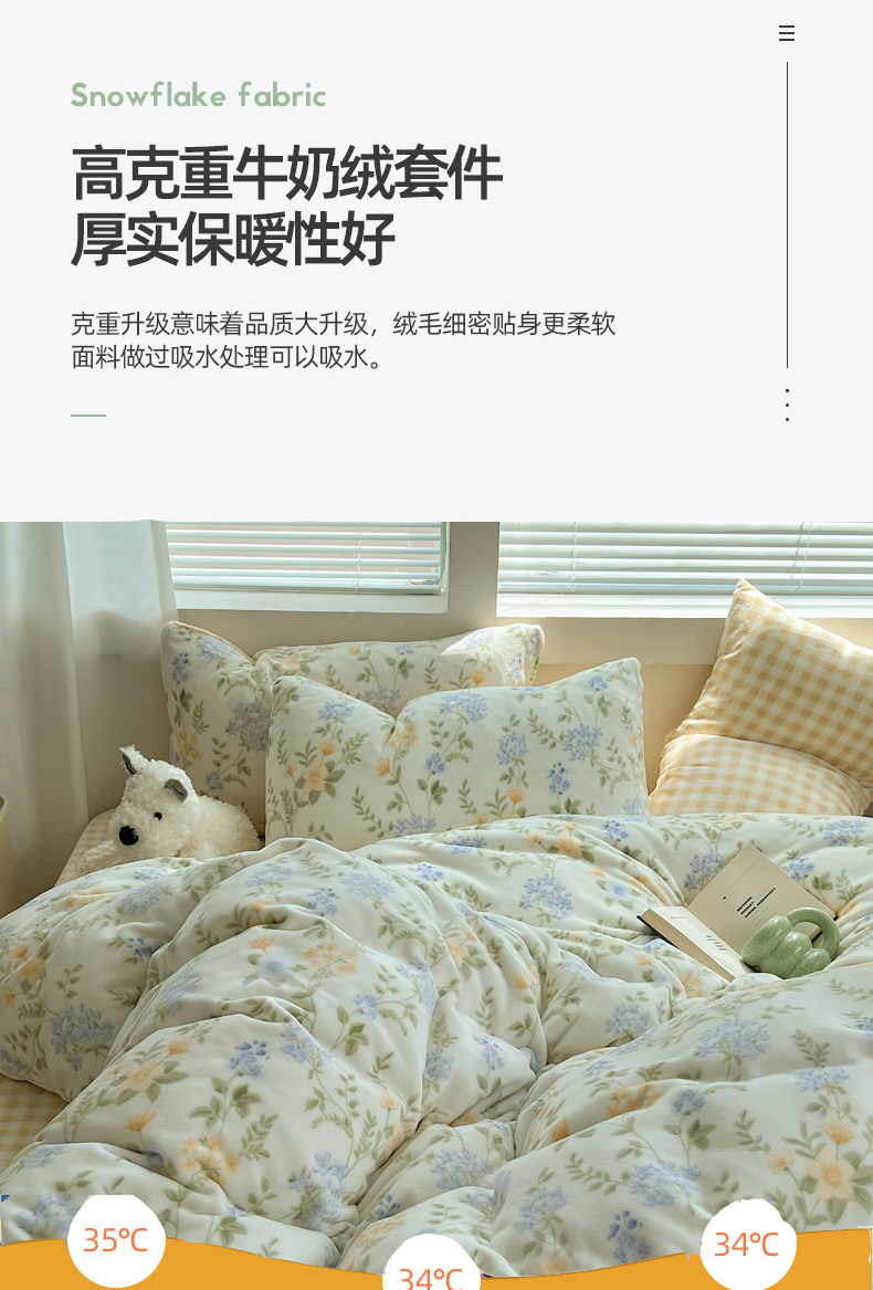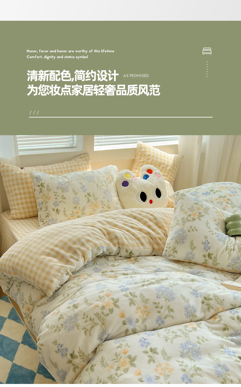 当前位置: 91家纺网 > 商品网购 > 床品套件 > 四件套 > 牛奶绒四件套 > 三朵家纺 2023年牛奶绒小清新系列四件套 漫步花丛