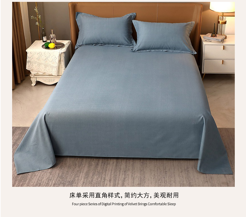 晶缦家纺 2023加厚全棉纯色生态磨毛多规格单品四件套--床单 纯依-蓝灰
