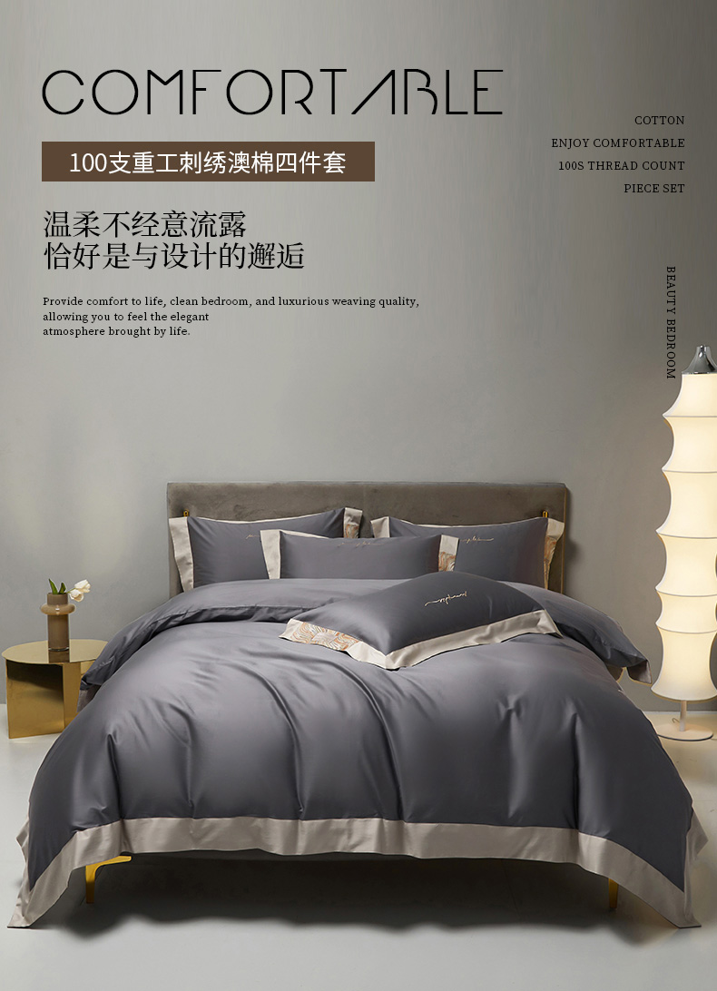 商品名称:爱缦 2023新款极光系列100支澳棉四件套风格二 烟草灰