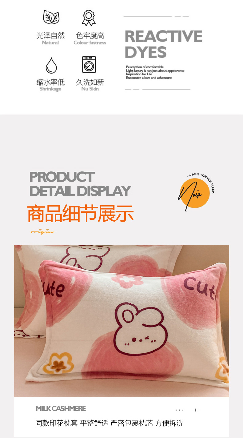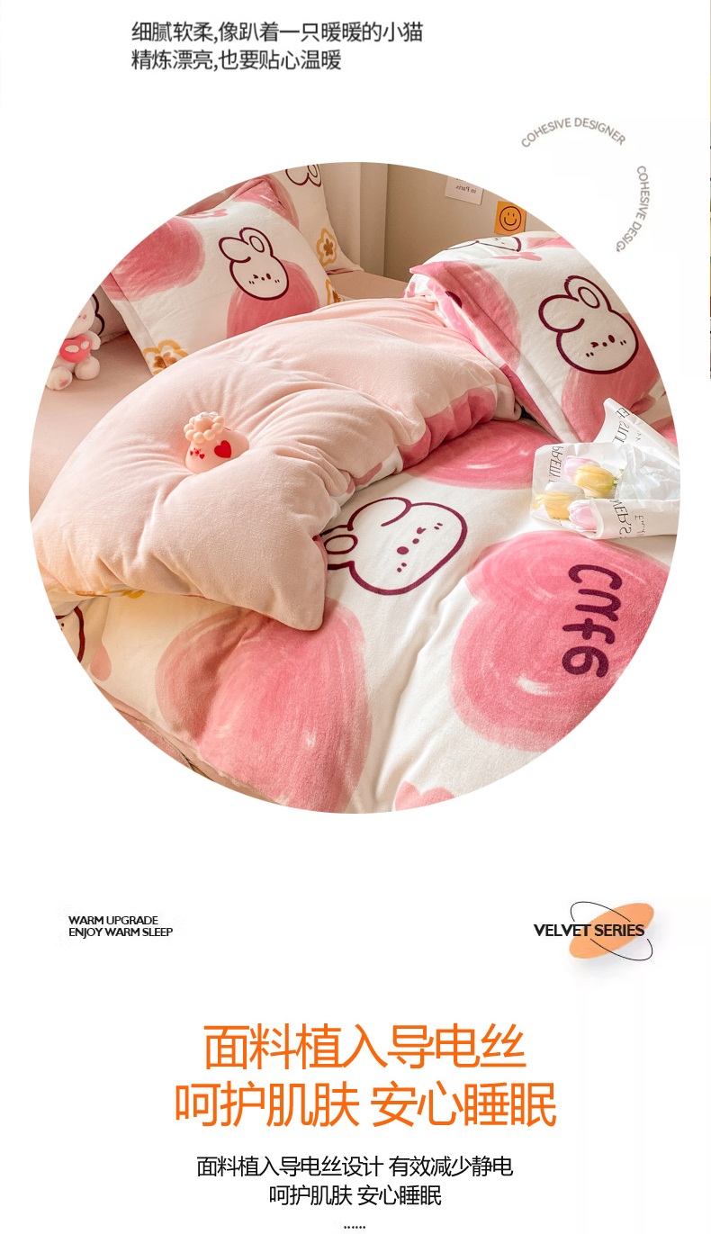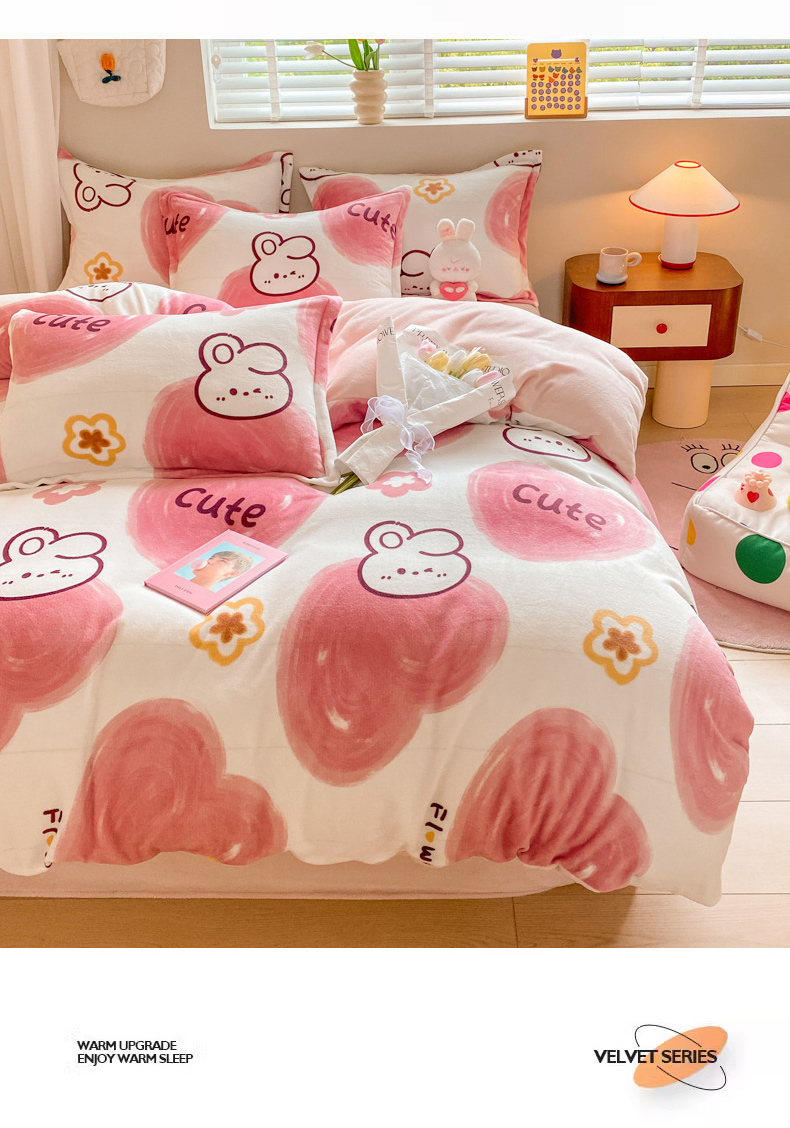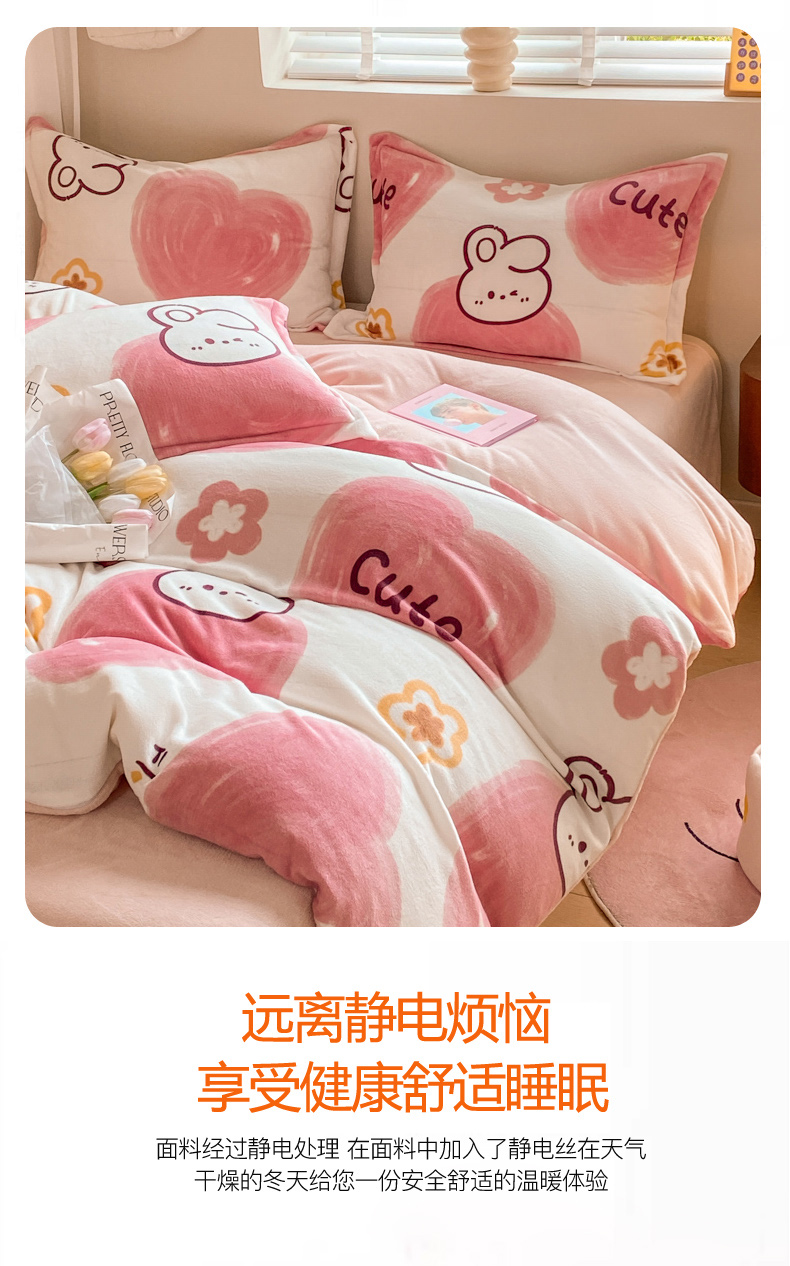 当前位置: 91家纺网 > 商品网购 > 床品套件 > 四件套 > 牛奶绒四件套 > 沐慕 2024新款牛奶绒加厚保暖卡通印花四件套 爱心粉兔