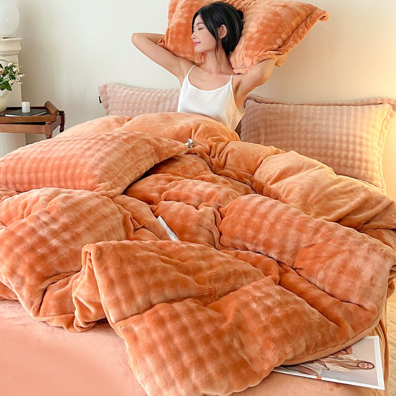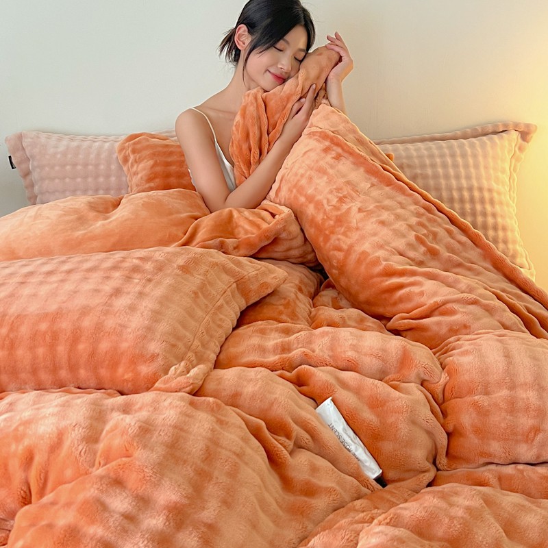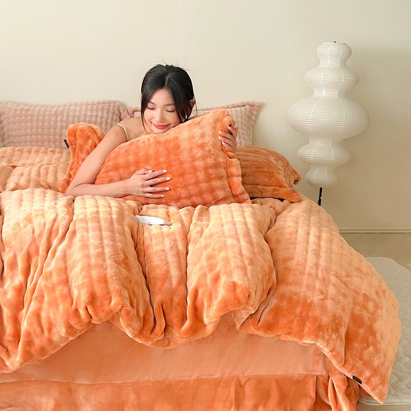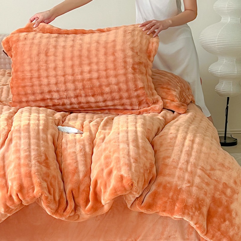 商品名称:佳居缘 2023新款A类兔兔绒四件套柔软亲肤绒轻奢套件 鲜橙